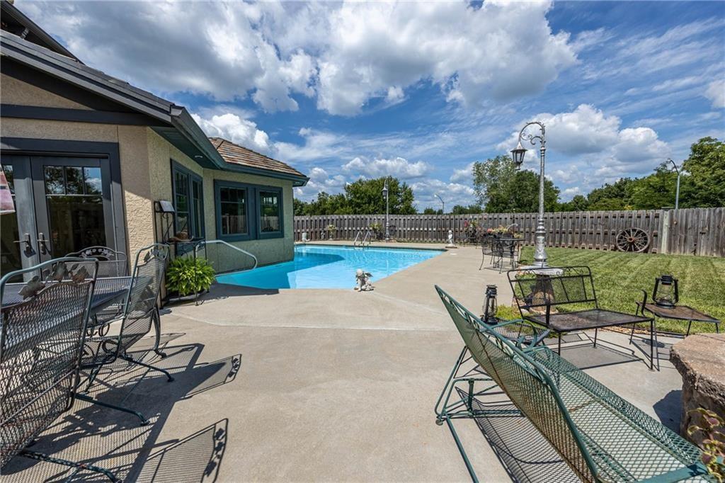 Exceptional Estate Near UCM!! Discover this exceptional, one-of-a-kind home on 3.36 acres within city limits, just steps from UCM. This luxurious residence features a stunning stucco, brick, and stone exterior with a slate roof and copper accents. Inside, enjoy 8ft doors, 10ft ceilings, crown molding, and Pella designer windows. The home offers 6 bedrooms, 5 full baths, and 2 half baths. The grand main floor includes a spacious entry, hearth room, formal dining, and a gourmet kitchen with granite countertops, an island, walk-in pantry, and stainless steel appliances. A breakfast nook shares a double-sided stone fireplace with the hearth room, and a sunroom provides a kitchenette/bar and entertainment space. The main floor also hosts a lavish master suite with dual vanities, a dual-head walk-in tile shower, jetted tub, and a giant walk-in closet, plus a guest bedroom and full bath. Upstairs, find three large bedrooms, one with an en-suite bath, and two sharing a Jack-n-Jill bath, all with walk-in closets. The walk-out basement boasts a family/rec room with a wet bar and fireplace, a large bedroom, a full bath, a dedicated tornado/storm room, and an office/craft room, alongside extensive unfinished storage. Adding to the property's appeal is a 40x60 shop/guest house with 1700 sq ft of finished living space (including a kitchen, full bath, and laundry) and 800 sq ft of unfinished storage. The outdoor oasis features a private, wood-fenced in-ground pool and patio entertainment area. This home also has a gas line ran to the fire pit and by the pool to add a gas heater or fire pit. There is also an additional line ran off of the main line to the septic for easy hook up to city sewer if desired. If a lawn watering system is desired the well still remains for low-cost watering. Seller will also be willing to trade for investment property for all of part of the sale. Come on let's make a deal!!