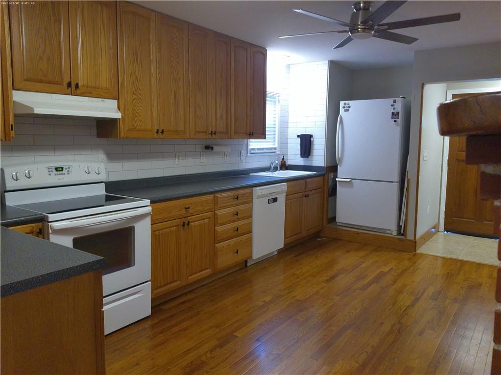 Quality updated home with upgrades. Home sits on a corner lot close to schools and shopping. Newer tile in bathroom and laundry /half bath. Hardwood floors throughout the rest of the home. Newer high efficiency furnace and water heater, newer Anderson windows. All lighting and wiring has been upgraded and replaced. The detached 2 car garage with openers has concrete floor and is oversized providing plenty of room for 2 cars and a workshop. Full bath in basement is in an open area; basement is ready to be finished by buyer.