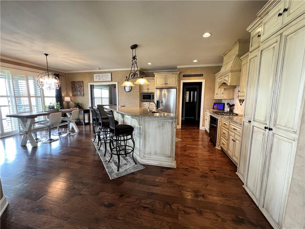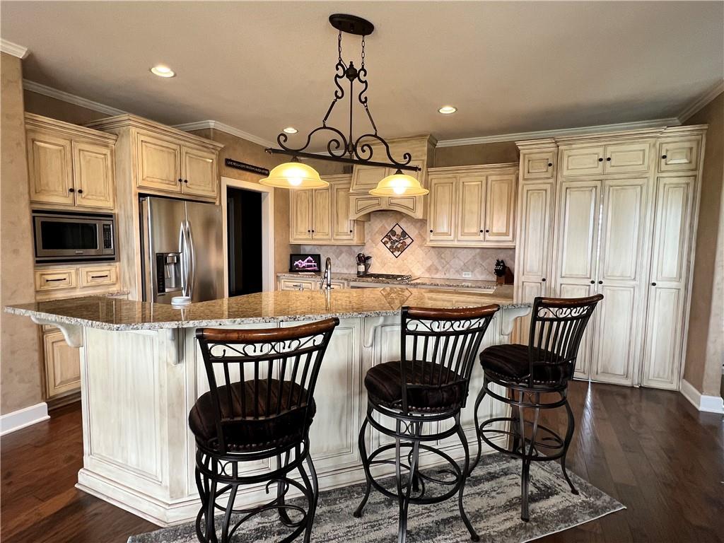 Stunning 5-bedroom, 4-bathroom home located in the highly desirable Seven Bridges neighborhood! This property sits on one of the best lots in the community—backing to private land with no rear neighbors—providing privacy and incredible views from the spacious covered deck. The main level features a large, open-concept layout with a spacious kitchen complete with granite countertops, stainless steel appliances, a HUGE island, abundant cabinetry, and a large hidden walk-in pantry. Upstairs includes generously sized bedrooms, full bathrooms, and a luxurious primary suite. The 1000+ sq ft basement is already stubbed for a bathroom and ready to be finished to suit your needs. Additional features include several smart home upgrades and professionally installed All Season Permanent Lighting around the home and deck. Located in a premier neighborhood with top-tier amenities, this home combines comfort, space, privacy, and smart upgrades throughout. This home is a must-see! Owner/Agent.