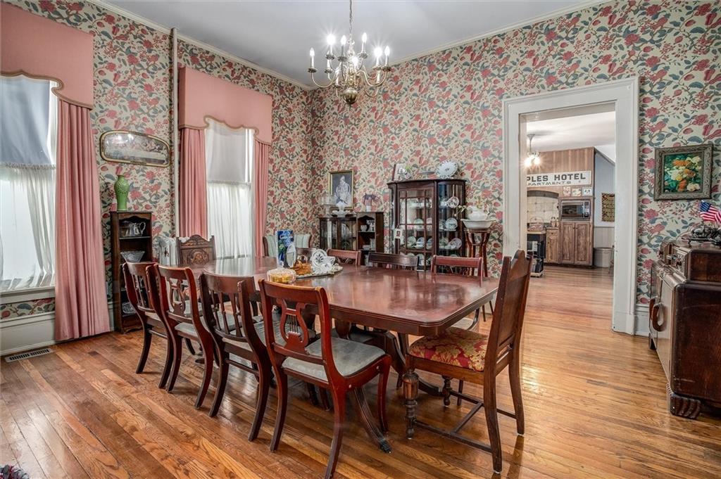 The Porter-Chiles House is back on the market with no fault of the seller. Here you have a unique opportunity to own a designated Historic Local Landmark! The Porter-Chiles House is a breathtaking example of Second Empire architecture nestled in the heart of Independence. Originally constructed in 1860 by David Porter, a prominent local builder and businessman, this stately 3-story home later became known as the Maples Hotel in the early 20th century, welcoming guests with its distinctive charm. The home was later owned by C.C. Chiles, a significant figure in Independence's history. Mostly restored, the home retains its historic grandeur while seamlessly incorporating modern comforts. From the signature mansard roof to intricate period detailing, every inch of this property reflects its past. The Kitchen's updated walnut cabinetry and granite countertops, along with a butler's pantry and original millwork, add timeless elegance. From the foyer, the library showcases beautiful built-ins, which are perfect for quiet reflection. There is a stained glass door that leads outside to the meticulously maintained side garden. The parlor room, opposite the library, hosts a space of serenity, relaxation, and glamor. Down the hall is the original sitting room, presently being used as a main-floor bedroom without a closet. This room has a fireplace behind the wall. Upstairs on the second level, you will see 4 generously sized bedrooms, one of which has been transformed into a bathroom with a clawfoot tub. Besides the second-floor laundry and another bathroom, the home has two newer zoned HVAC systems and two 50-gallon water heaters. The roof is also newer. Upstairs to the third level, you will see 5 bedrooms, some with the original lettering from the Hotel era, and another bathroom. Whether you're entertaining in the formal dining room, relaxing in the parlor, or walking the halls, this home offers a rare blend of history, craftsmanship, and comfort.
