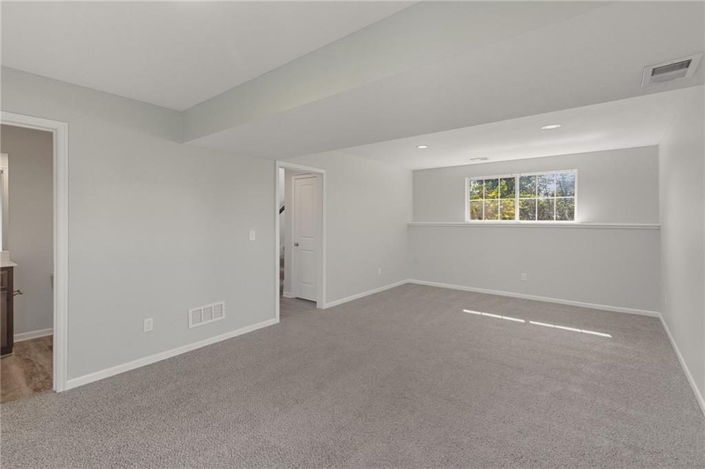 Enjoy comfort and style in this inviting 1-story home with a full finished basement and 2-car garage. The open floor plan features a spacious kitchen with a large island, stainless steel appliances, and accent lighting that adds a modern touch. The primary suite offers a double vanity and generous closet space. Step out onto the wood deck and take in peaceful views of the pond, grassy area, and surrounding neighborhood. A perfect blend of indoor and outdoor living—schedule a showing today!