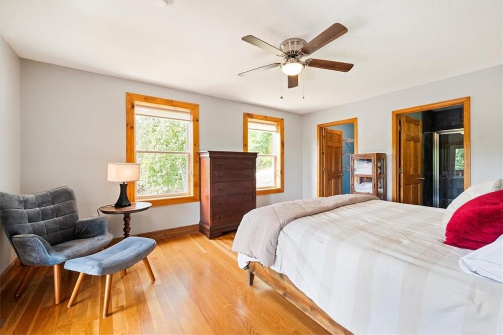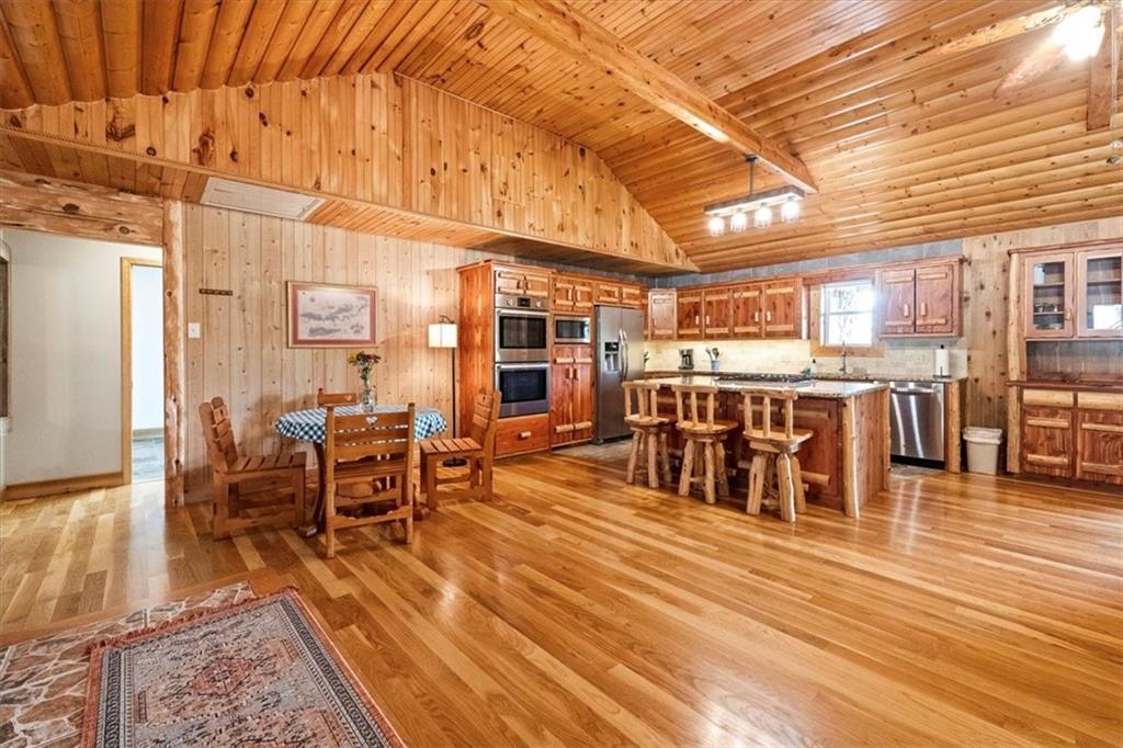 Dreaming of a lake get away? Welcome to this beautifully maintained 2-bedroom, 2-bath cedar log-sided home on approximately 8 acres, nestled on a serene lot that backs up to core land of Truman Lake. Whether you’re looking for a weekend getaway, full-time retreat, or lake lover’s dream, this property offers the perfect blend of privacy, comfort, and functionality. Selling fully furnished - as turn-key as they come, step inside and you’ll be greeted by cedar walls, gleaming hardwood floors, and a stunning stone wooden fireplace. The updated kitchen is both stylish and functional, featuring double ovens, gas stove, granite countertops, custom cabinets, tile backsplash, and newer stainless steel appliances. Laundry is located on the main level. Both bedrooms are generously sized with large closets and updated bathrooms that include tiled flooring and spacious walk-in showers. One bedroom offers direct access to the back deck, perfect for enjoying your morning coffee with a view. Enjoy outdoor living with a covered front porch and a large covered back deck overlooking peaceful woods and wildlife. The basement offers the potential for additional living space or ample storage for lake gear, ATVs, or hobbies. The property includes a 30x40 Quonset outbuilding with concrete floors and electricity, plus multiple pole barns, ideal for storing boats, equipment, or working on your next project. The pole barn directly behind the outbuilding has electricity running to it as well. Property is own it's own private well. Find mature Hickory, Oak, and Cherry trees throughout the timber. Located minutes away from restaurants, boat rentals, motels, RV parks, marina/boat slips, and more! This property is a must see!