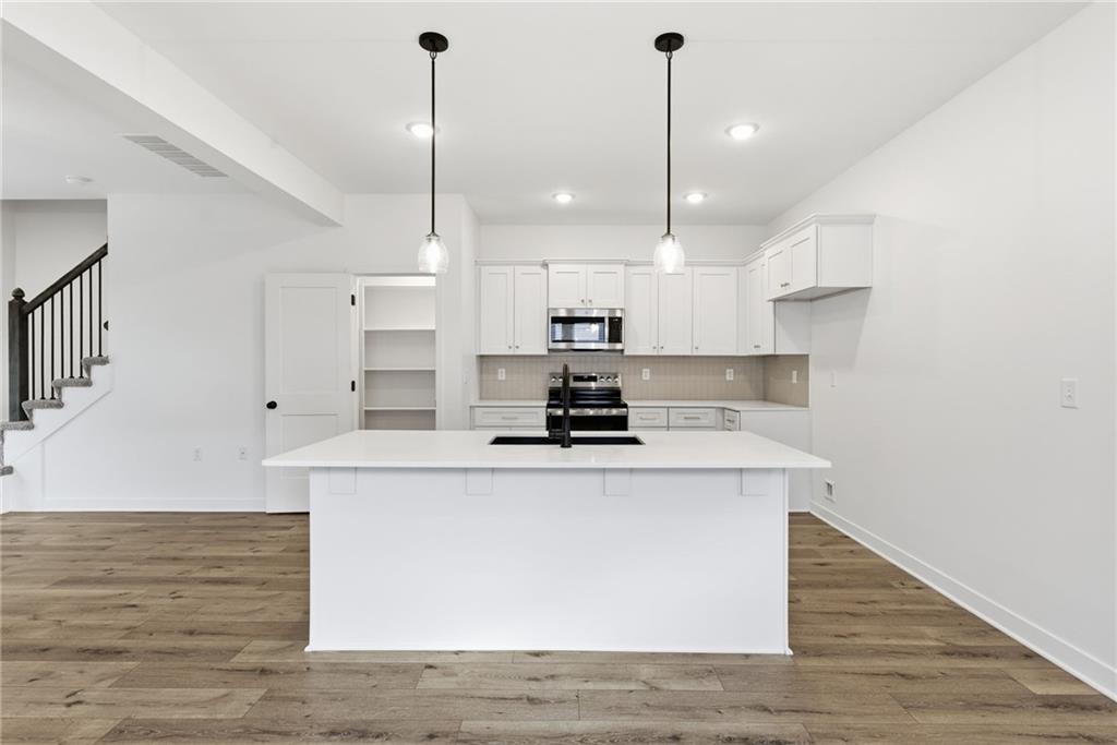 This beautiful 3-bedroom, 2.5-bathroom new construction home showcases a sleek modern design with a well-equipped kitchen featuring a large island with quartz countertops, stainless steel appliances and a spacious walk-in pantry. The main ensuite includes vaulted ceilings, a generous walk-in closet with built-in shelving, and a stylish attached primary bath. Enjoy convenient ground-level access to the rear patio and fully landscaped yard—perfect for pets, entertaining, and family activities. Spacious two-car garage offering plenty of room for parking and storage. Home is currently under construction; pictures are of a completed build and similar floor plan. Finishes and colors may vary. Estimated completion date is Sept 25.