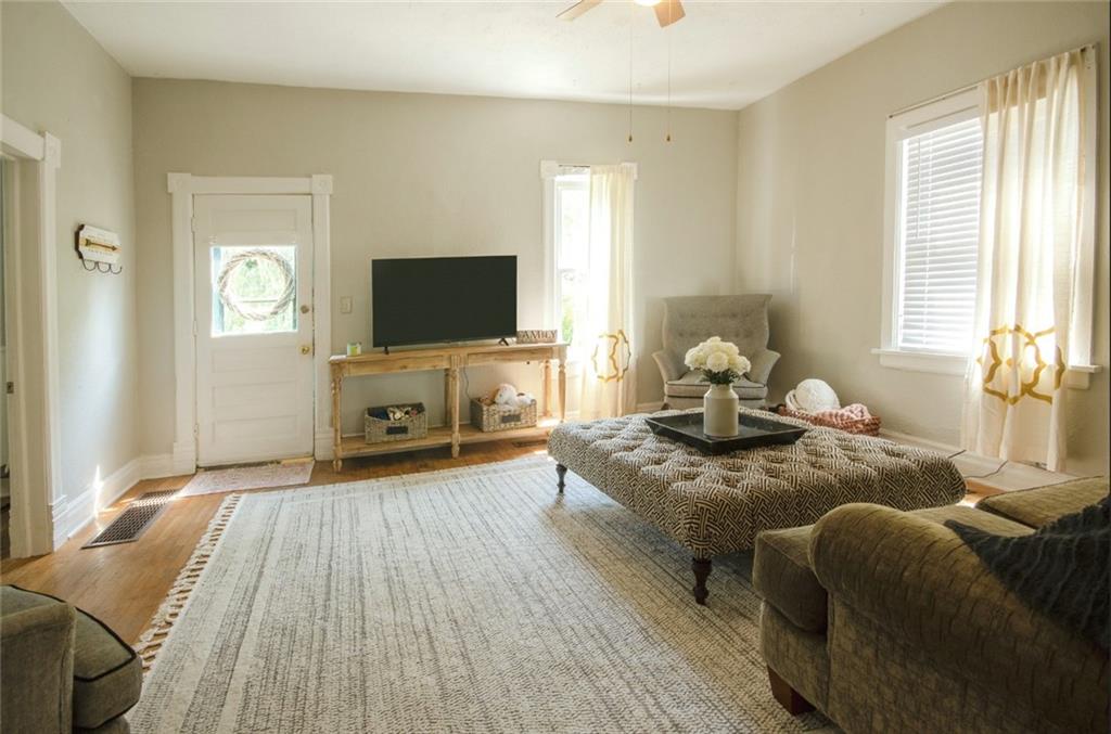 Come see this adorable bungalow near downtown Liberty! This century home maintains its historic charm with original moldings, NEWLY REFINISHED hardwood floors, and even an exposed brick chimney. BRAND NEW HVAC! The full basement provides ample storage and space for a workshop or rec room. It walks out to a good-sized, fully fenced backyard-- perfect for kids and dogs! Located on a quiet street with quick access to I-35 via Nashua Road in the highly acclaimed Liberty Public School District. All this for under 200K!