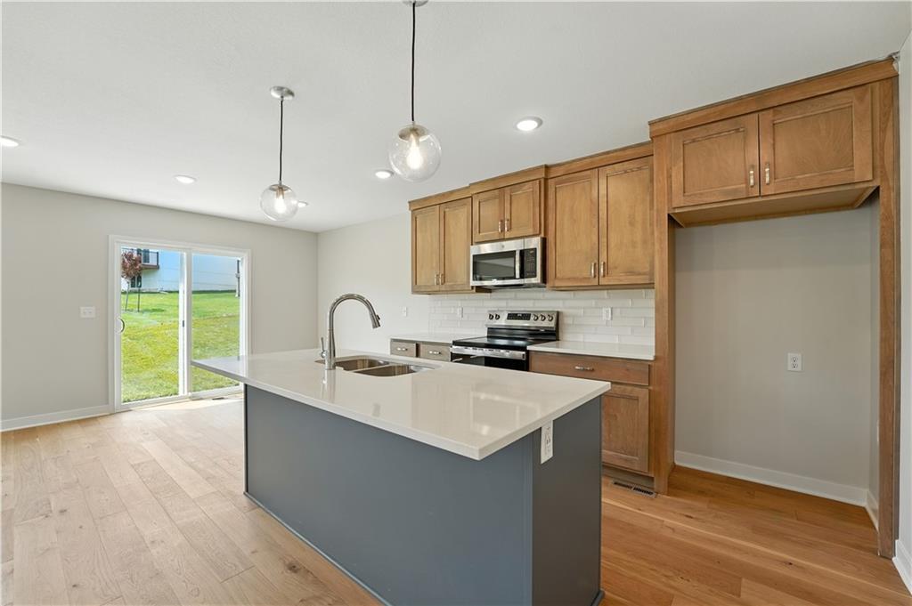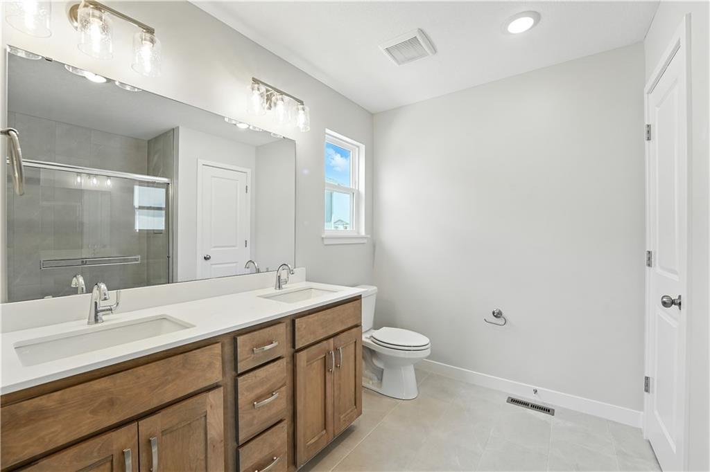 Ready for immediate move-in! Welcome to this charming 4-bedroom, 3.5-bathroom two-story home, nestled on a serene private street that culminates in a peaceful cul-de-sac. The main level boasts an open floor plan, perfect for entertaining and daily living. The well-designed layout seamlessly connects the living, dining, and kitchen areas, creating a spacious and inviting atmosphere. Upstairs, you'll find all three bedrooms, including the generously-sized primary bedroom, along with a convenient laundry room. This thoughtful design ensures that privacy and functionality are seamlessly combined. The full unfinished lower level presents endless possibilities—create your dream space or use for extra storage. Eastbrooke at Creekmoor has it all! Designed around 108 acre Lake Creekmoor and the acclaimed 18 Hole Championship Golf Course, Creekmoor offers one of the most comprehensive residential amenities packages available, where homeowners with both active and relaxed lifestyles enjoy what feels like vacation all year long. Pools, tennis, pickleball, basketball, 24-hour fitness center, golf pro shop, Tavern on the Moor restaurant and bar, fishing, boating, SUP, and still more...it's ALL here! With an abundance of shops, restaurants and services minutes away and with easy access to Jackson and Johnson Counties, homeowners have all the benefits of metro living at their fingertips while enjoying home life outside the hustle and bustle. Whether making your first home purchase or your last, this is a destination community like no other.
