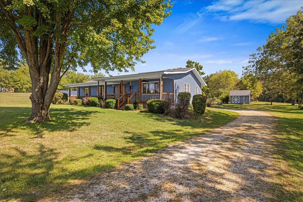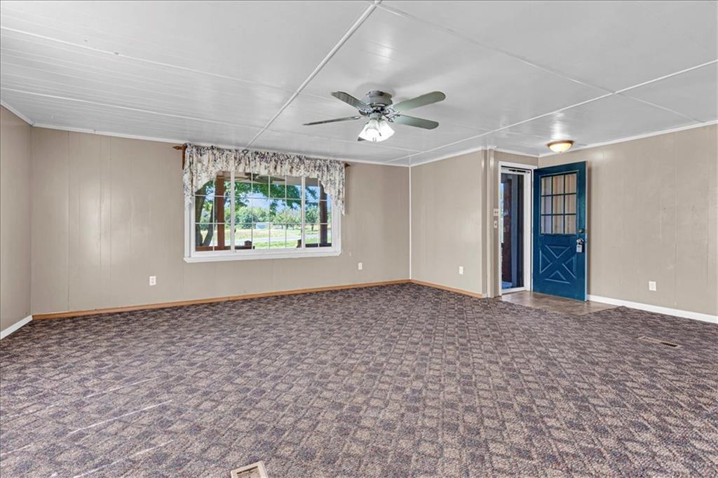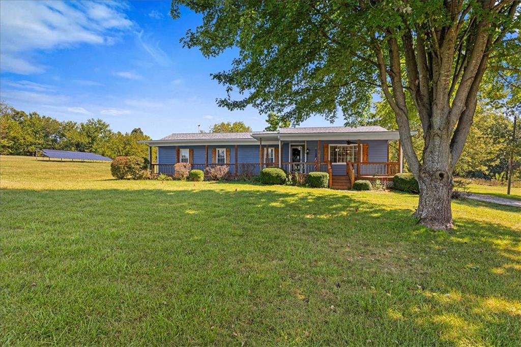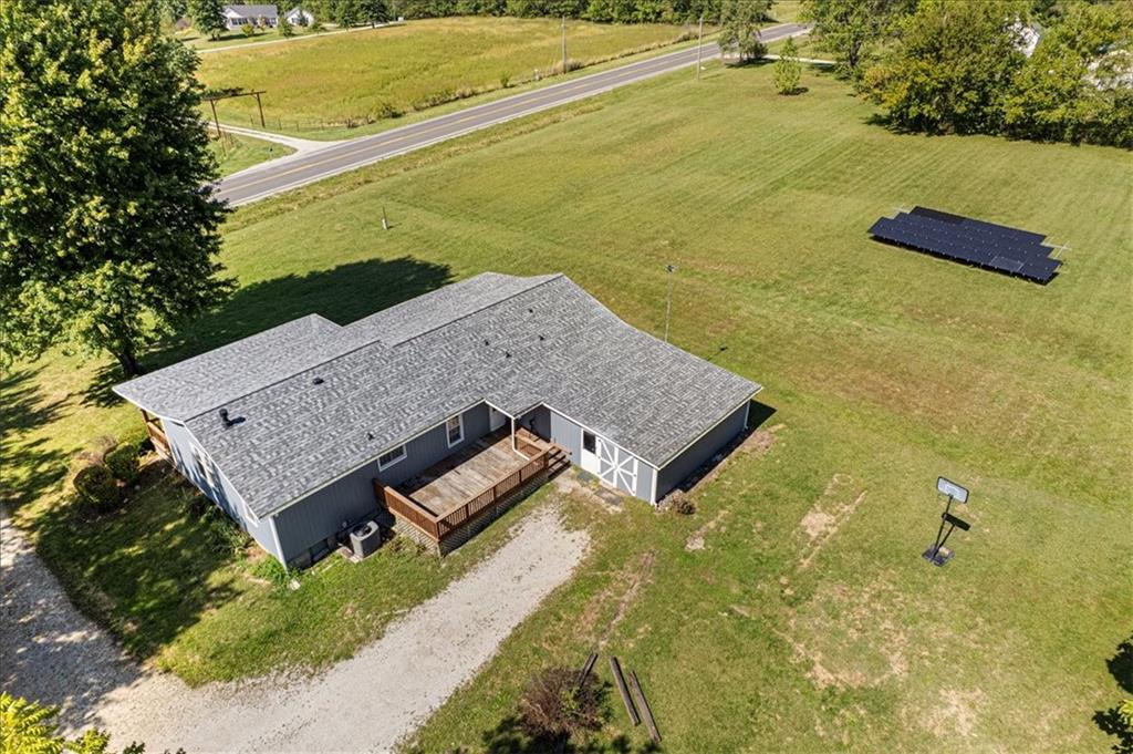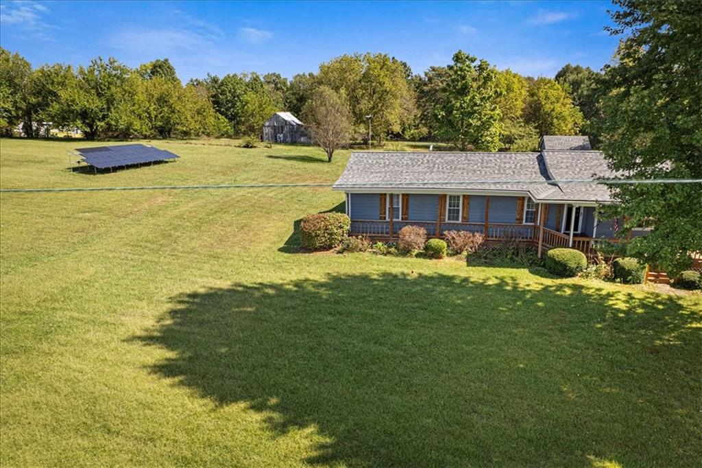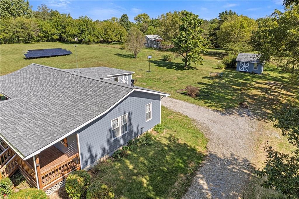 Discover country living with modern comforts on this 13.34-acre property just off the blacktop—no gravel roads! This spacious home features 2 bedrooms, 2 bathrooms, plus 1 non-conforming bedroom, offering flexibility for guests, a home office, or hobby space. Recent updates include a new roof, gutters, windows and freshly painted siding, giving the home excellent curb appeal and peace of mind for years to come. The home is equipped with a heat pump and 23 solar panels, combining comfort and energy efficiency. Enjoy the outdoors with a covered front porch, perfect for relaxing, and a back porch. The acreage is mostly treed, creating a private and serene setting. A shed and barn provide storage and space for equipment, or projects. This property offers the best of both worlds—peaceful acreage living with easy access off Highway 69.