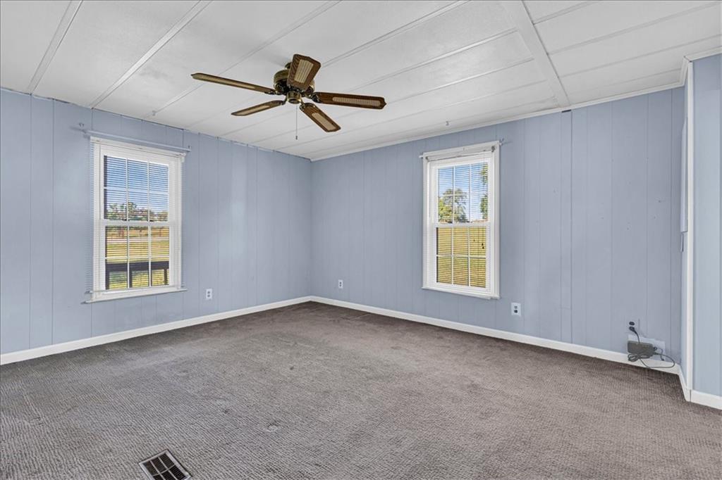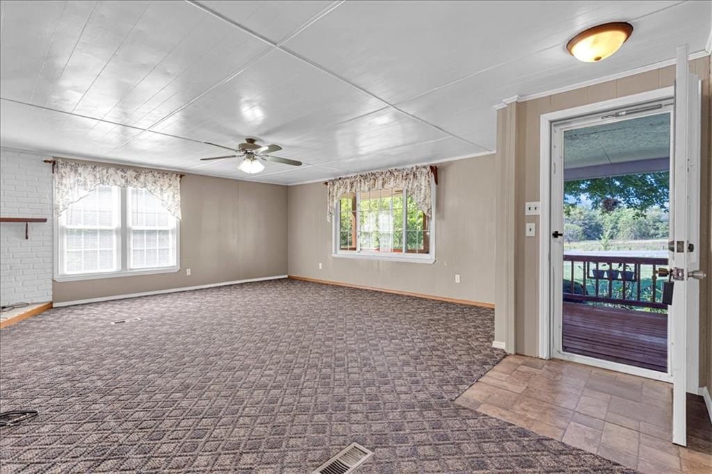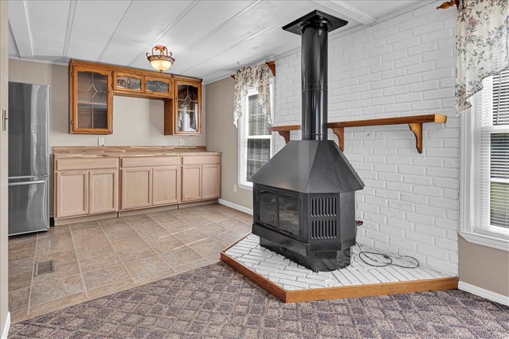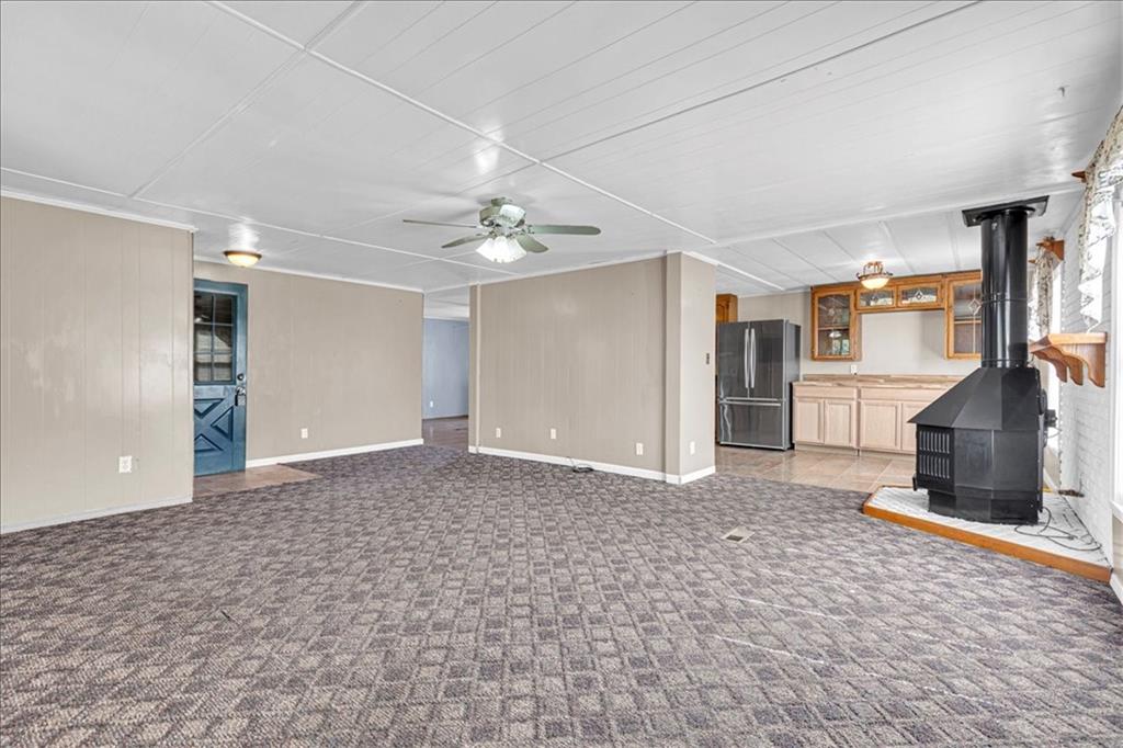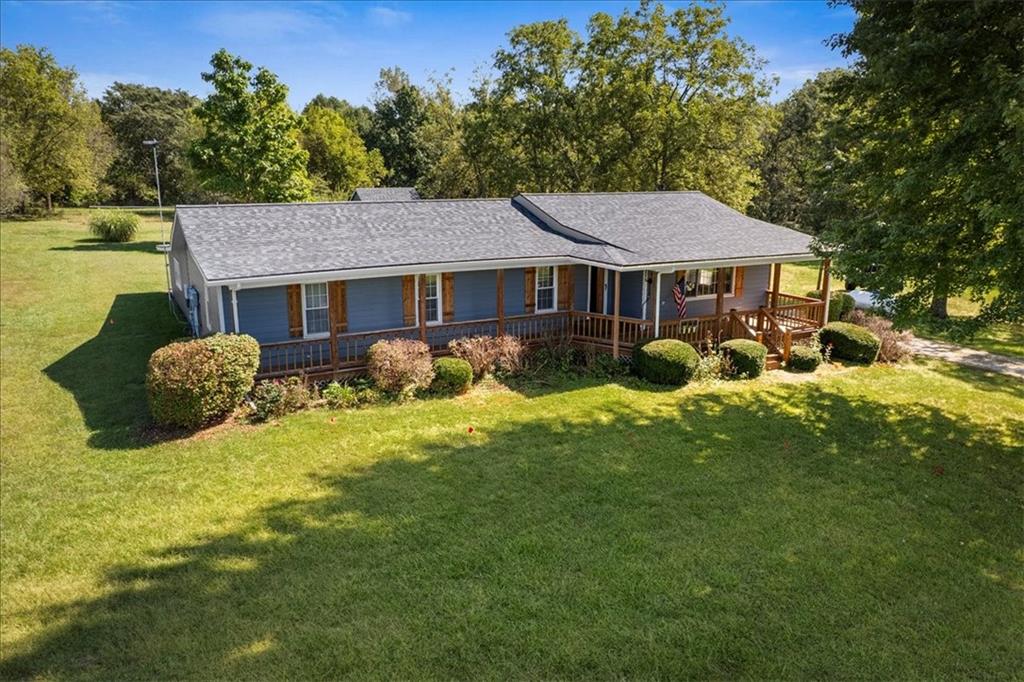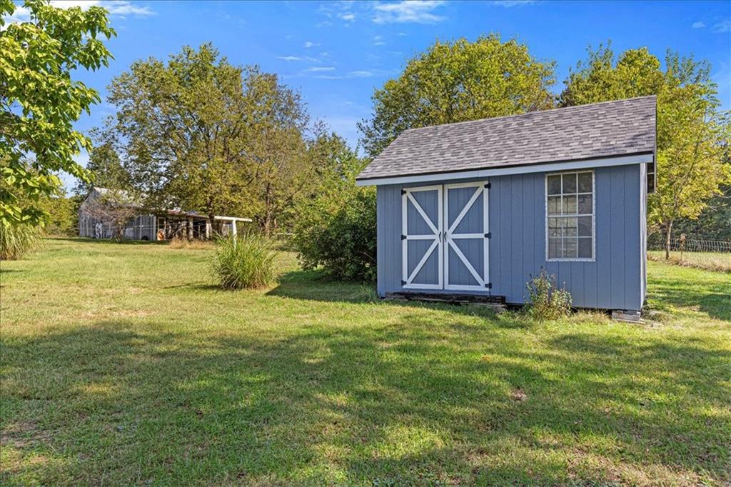 Discover country living with modern comforts on this 13.34-acre property just off the blacktop—no gravel roads! This spacious home features 2 bedrooms, 2 bathrooms, plus 1 non-conforming bedroom, offering flexibility for guests, a home office, or hobby space. Recent updates include a new roof, gutters, windows and freshly painted siding, giving the home excellent curb appeal and peace of mind for years to come. The home is equipped with a heat pump and 23 solar panels, combining comfort and energy efficiency. Enjoy the outdoors with a covered front porch, perfect for relaxing, and a back porch. The acreage is mostly treed, creating a private and serene setting. A shed and barn provide storage and space for equipment, or projects. This property offers the best of both worlds—peaceful acreage living with easy access off Highway 69.