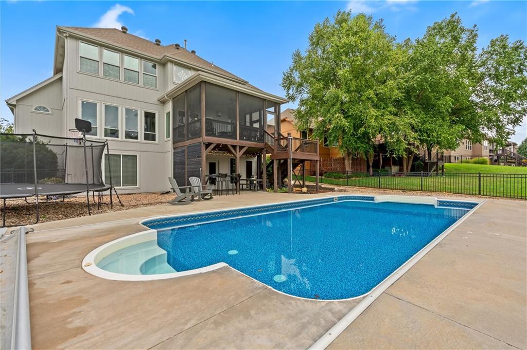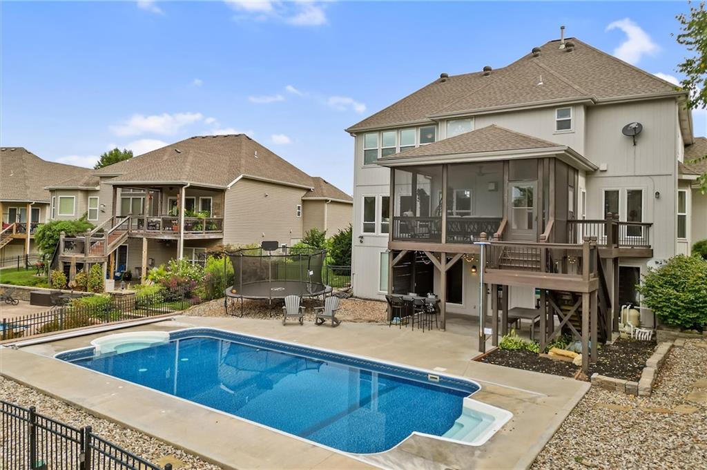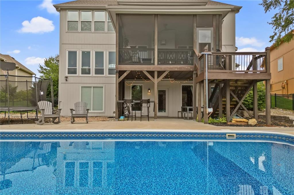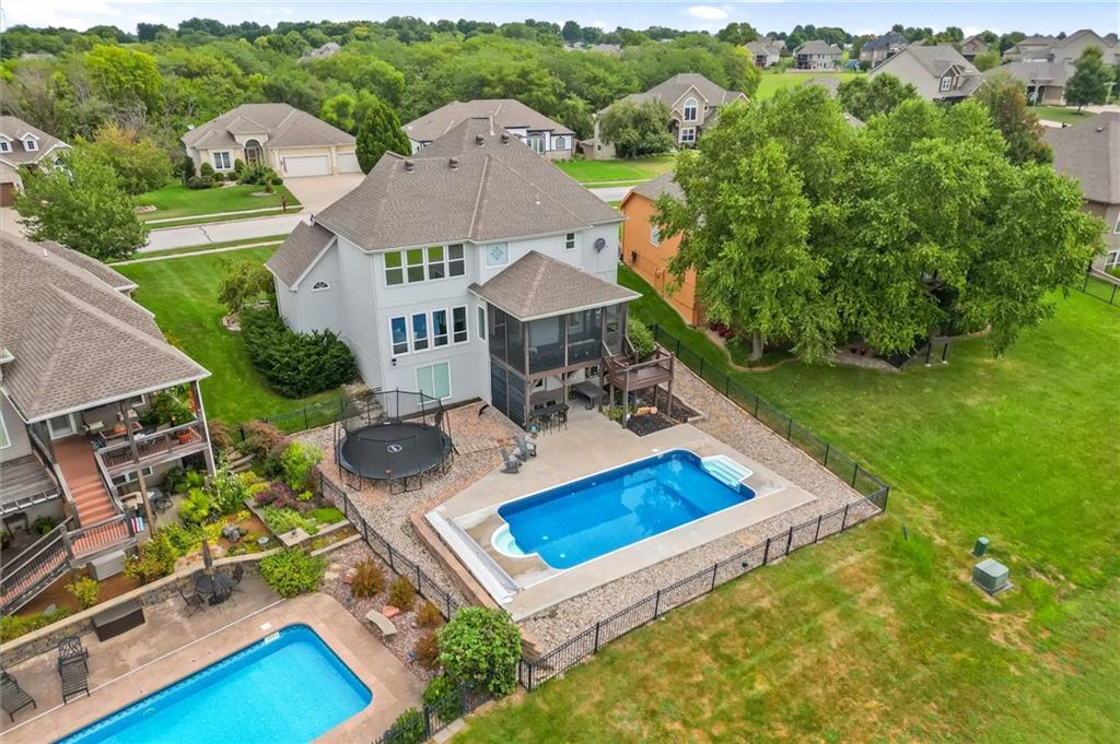 Welcome to this stunning Indian Trails home, beautifully updated inside and out! Step inside to find a fresh color palette, NEW hardwood floors, new carpet, and paint throughout. The kitchen features pretty custom-painted cabinets, an eat-in area, and flows easily to the hearth room with fireplace, formal dining, living room, and main floor home office. The huge master suite offers a true retreat. The walk-out lower level includes a bar and full bath, opening to your backyard paradise with an inground pool, spacious deck, patio, and wrought iron fence. Relax on the covered, screened-in deck with beautiful views of the pool and tree line. Sellers have made extensive updates so you can simply move in and enjoy. All this, plus just minutes to Smithville Lake—perfect for those who love the water and the outdoors!