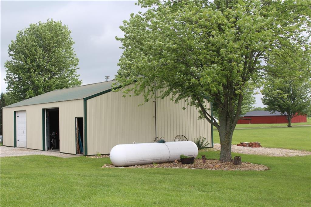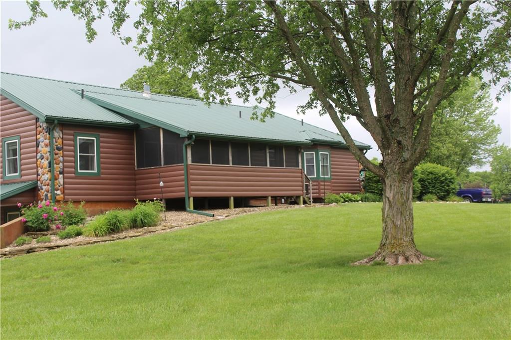 This beautifully maintained, custom-built 5-bedroom ranch sits on 10.37(M/L), offering space, privacy, and the perfect blend of country charm with modern comfort. The main level features a huge primary suite with private bath and walk-in closet, along with three additional bedrooms-one with its own private bath. The kitchen is ideal for family gatherings, featuring custom oak cabinets, hardwood floors, double ovens, and an open-concept layout that flows seamlessly into the dining and living areas. Built-in cabinetry and a custom entertainment center add warmth and functionality. Laundry room with sink sits conveniently near primary suite and kitchen. Formal dining room could be used as an office or bedroom. Enjoy the outdoors with a large screened-in back porch overlooking the property's natural setting, and a big front porch that welcomes guests with timeless country appeal. The finished walk-out lower level expands your living space with a large family room, full bath, guest bedroom, and a versatile bonus room with built-in storage-perfect for a home office, craft room, or 6th bedroom. Best of all, the pool table in the family room stays with the property, making it move-in ready for entertaining. A generous unfinished storage area (approx 700 sq ft) makes organizing seasonal and household items easy. Recent updates include a steel roof (2017), steel siding (2019), Pella windows (2018), and new garage doors/openers (2021). The home is energy-efficient with excellent insulation, attic fan, and dual heat sources (propane and wood stove) to keep utility costs low. A covered firewood storage area by lower level door offers convenience. 1,000-gallon propane tank comes with the property. Outside, a 30x50 outbuilding with concrete floor, 100-amp electric service, 2 garage bays, and a barrel stove provides the perfect workshop, seller is leaving his full-size air compressor. This property combines country charm, comfort, and efficiency-ready for you to make it home.