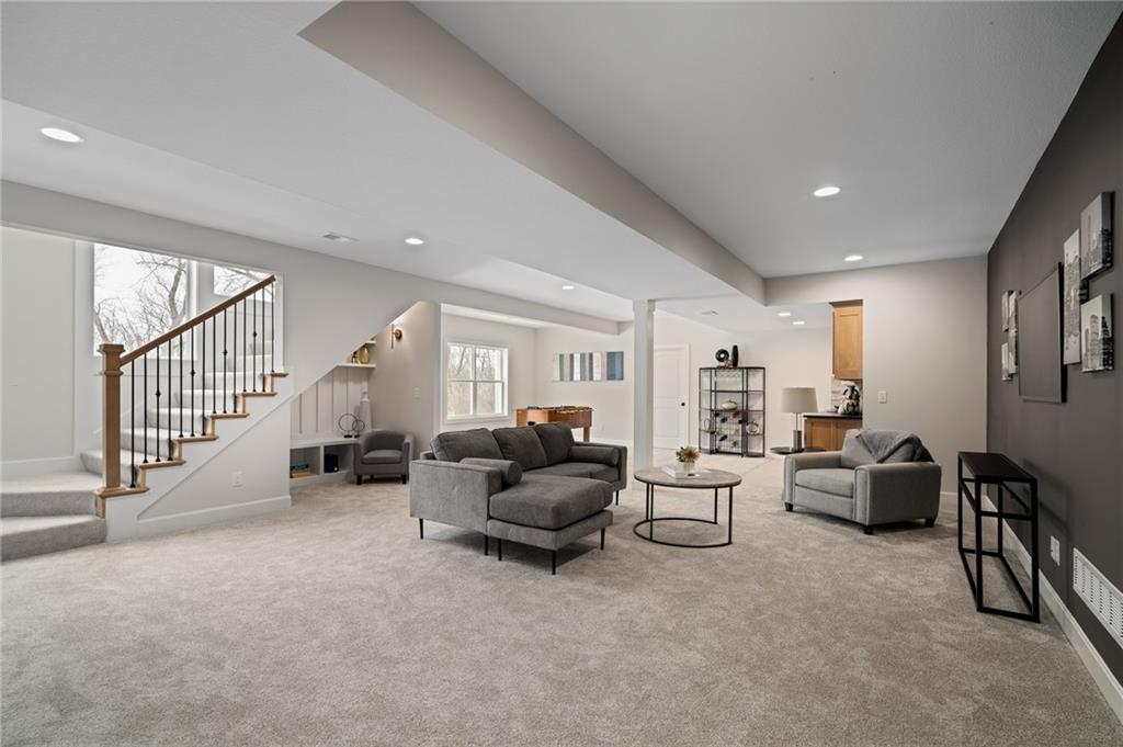 The HAMPTON VI Reverse 1.5 story by New Mark Homes is a standout plan with an inviting entry, tall ceilings, a wall of windows and a back staircase with a daylight lower level. Beautiful touches & details throughout. Kitchen has oversized island and gas cook top. Free standing tub in master bath. ***Home is in process and estimated completion in February 2026***Taxes are estimated. Pictures are of a similar home. Lakeview Ridge is a new build community just west of Lake Olathe with great homes started and fantastic lots available. POOL coming in 2026. You can get to the neighborhood off of Dennis & Houston with easy access from K7 or coming from Lakeshore. Our Sales Office is located 14271 Houston. Our development is right next to Lake Olathe and neighborhood feeds into Clearwater Creek Elementary, Oregon Trail Middle School and Olathe West High School.