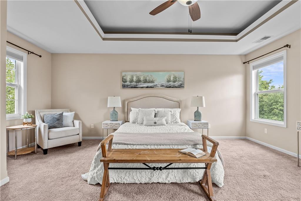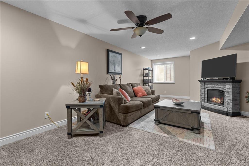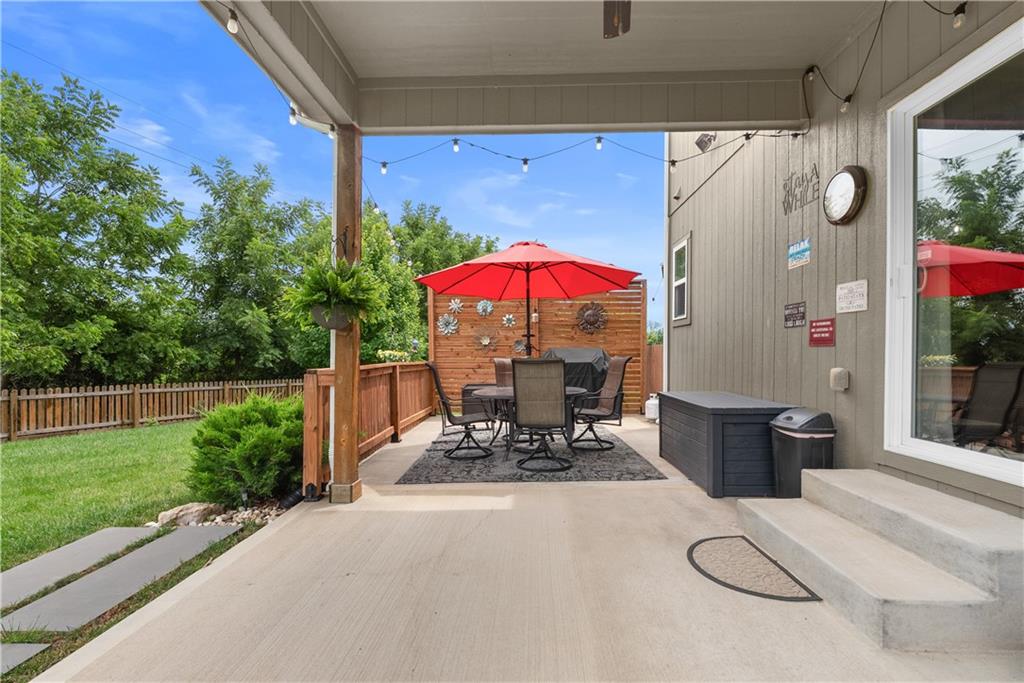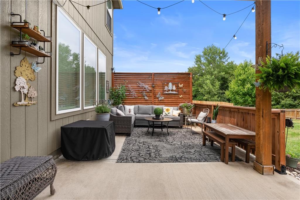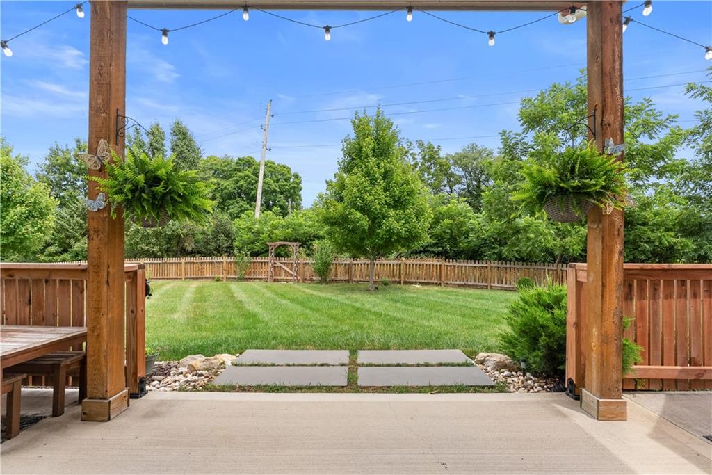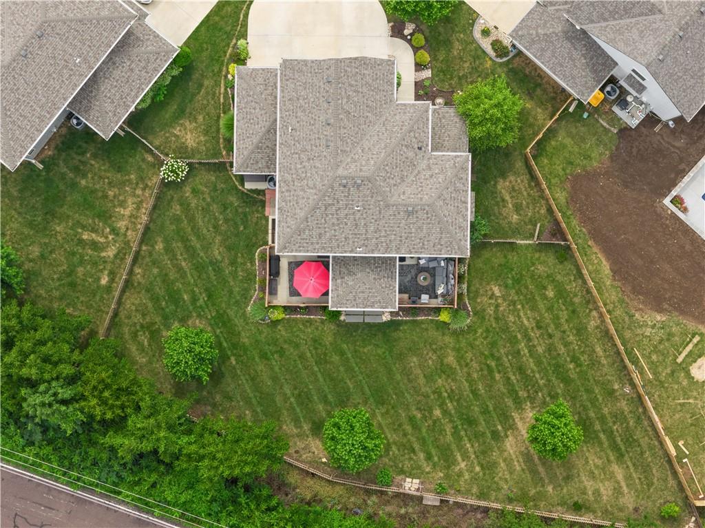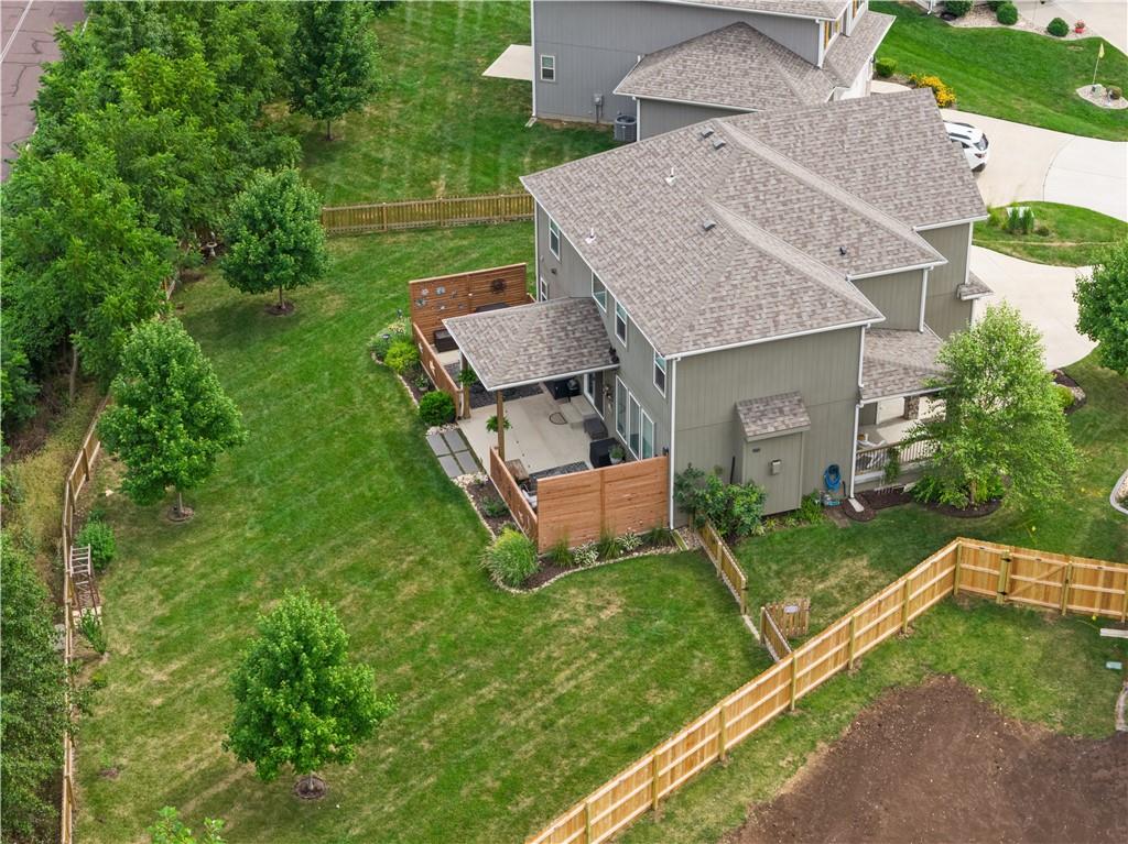 Welcome to this beautifully maintained 2-story home in the sought-after Parkway Estates community and award-winning Blue Springs School District! Nestled on a quiet cul-de-sac lot, this home offers 4 bedrooms, 2.5 baths, and over 2,700 sq ft of living space designed for both style and function. Step inside to find an inviting open floor plan with hardwood flooring, crown molding, and a cozy gas fireplace in the living room. The kitchen features granite countertops, a large island, stainless steel appliances, and rich cabinetry—perfect for everyday cooking and entertaining alike. Upstairs, the spacious primary suite offers a tray ceiling, soaking tub, dual vanities, and a walk-in closet with built-in organization. The finished lower level provides additional living space with room for a rec area, playroom, or home gym. It’s also stubbed for a future bathroom and includes multiple storage areas. Outside, enjoy the fully fenced backyard that backs to serene green space with no rear neighbors, along with a covered patio complete with privacy screen and string lighting—an entertainer’s dream! Additional highlights include a 3-car garage, new roof (2024), whole-home humidifier, water softener, and original HVAC and water heater (2016) still in great condition. Neighborhood amenities include a community pool, playground, and sidewalks, providing the perfect blend of convenience and community. This home checks every box—space, location, and lifestyle—all in the heart of Blue Springs.