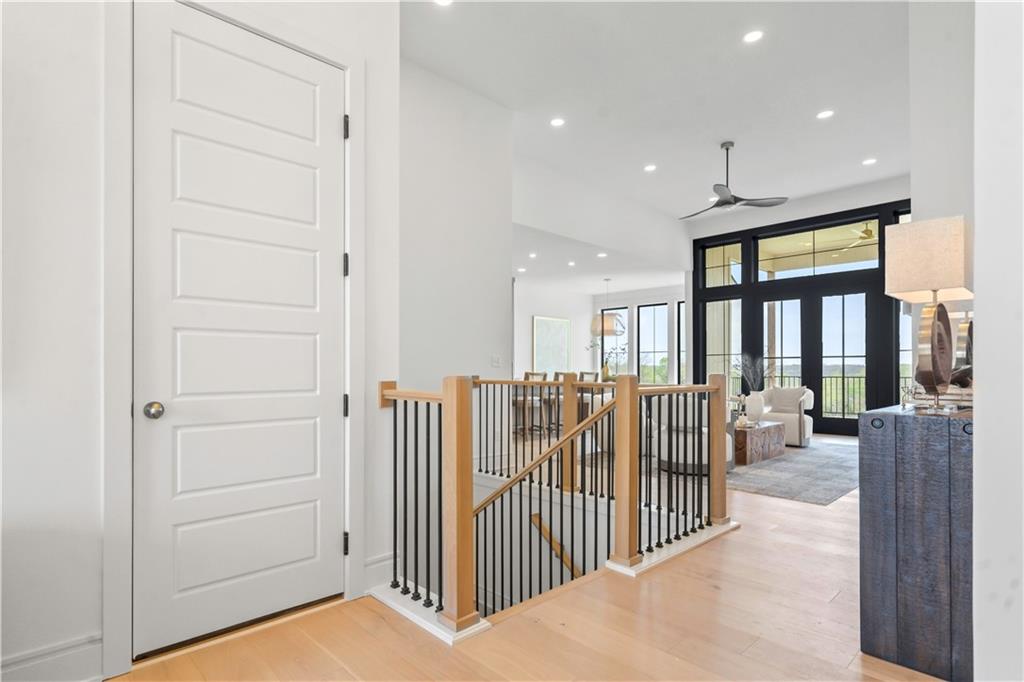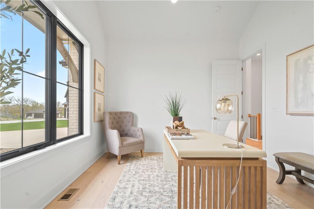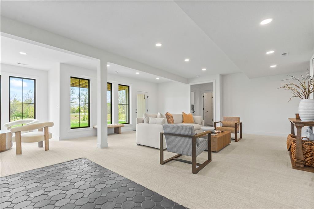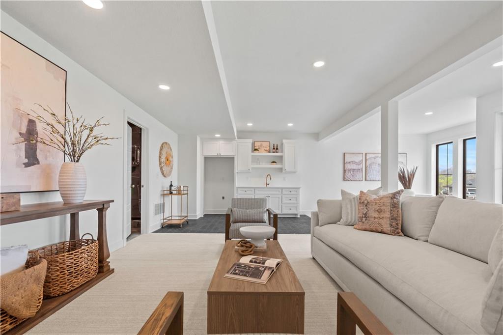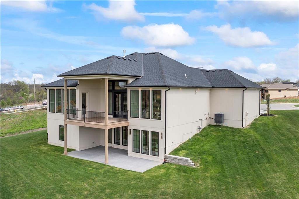 Stone Chase raises the bar with this breathtaking reverse 1.5 story, The Calvin II. Every detail has been thoughtfully designed with luxury and efficiency in mind. From the full stone front elevation to the grand double entry doors, this home exudes curb appeal. Step inside to find designer lighting, can lights throughout, and 8’ interior doors that set the tone for upscale living. The chef’s kitchen is a true showstopper with custom White Oak cabinetry, a Z-Line Autograph appliance package featuring double ovens, and the option for a panel-ready refrigerator. A walk-in butler’s pantry with sink offers added storage and prep space, while the open design makes entertaining a breeze. Retreat to the lower level, where a movie theater with Roxul soundproof insulation promises the ultimate entertainment experience. Outdoors, enjoy a low-maintenance stamped antiqued concrete patio and an upper balcony with large French doors, perfect for relaxing or entertaining. Natural light floods the home through 94" rear windows—the largest available from the manufacturer—while a suspended garage adds valuable storage space. Throughout the home, you’ll find casement windows, fully tiled bathrooms, and thoughtful details that elevate the overall design. Built with energy efficiency in mind, this home features 2x6 construction instead of the standard 2x4, moving the wall R-factor from R13 to R19, along with soaring 10’ walls that add volume and style. Nestled in Woodland Oaks, you’ll enjoy nearby access to Lake Jacomo as well as Legacy Park, which offers a state-of-the-art community center, amphitheater, walking trails, disc golf, and sports facilities for all ages. With an unbeatable location and a home packed full of luxury features, The Calvin II is truly a dream in the making.