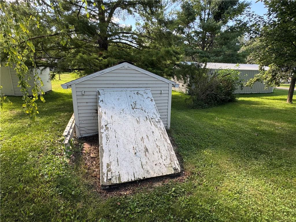 READY FOR SMALLTOWN LIVING! 3 bedroom and 2 Bath one level home is a small town. Master bath has had a recent updo with an updated tub shower and stacking washer dryer. The hall bath has a shower/tub with skylight. Love the outdoors: you will enjoy the Sunroom just off the kitchen (4 patio doors for lots of sun) and large screened porch on the north and newer deck on the front of the house. The large corner lot has a garden space with established asparagus patch and pear and apple trees. You can enjoy the small greenhouse and yard shed that stay and a Cellar in the backyard. There is a detached heated shop/garage with an attached open fronted garage with asphalt drive and added storage area on back. The home has had updated guttering in recent years and skylights Come check out this quite little Nw Missouri town and this lovely home in it.