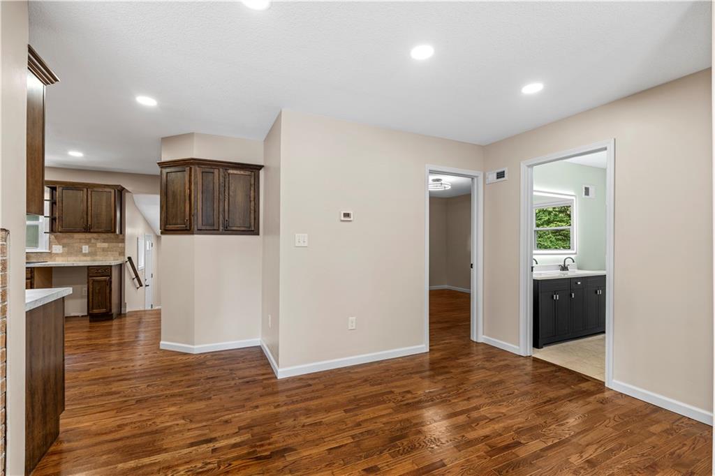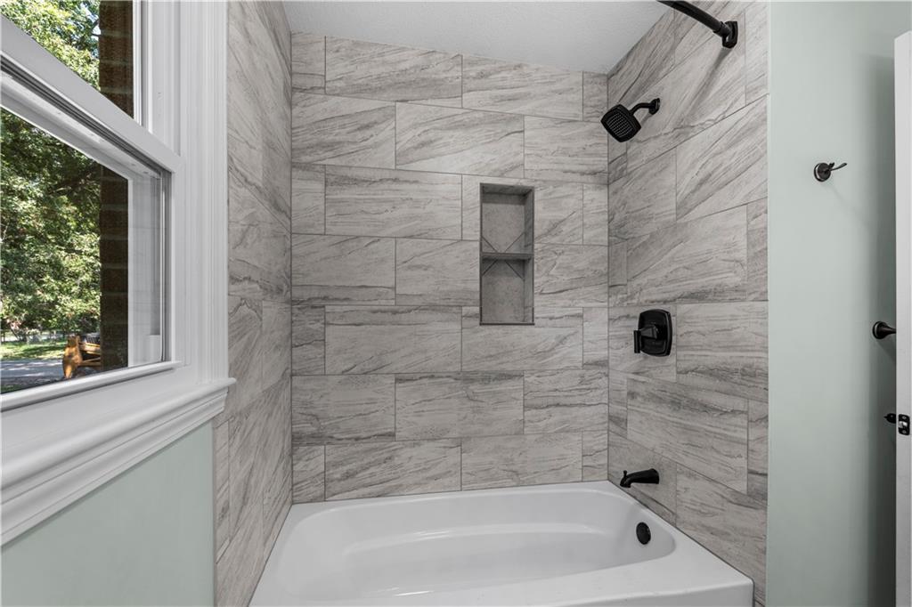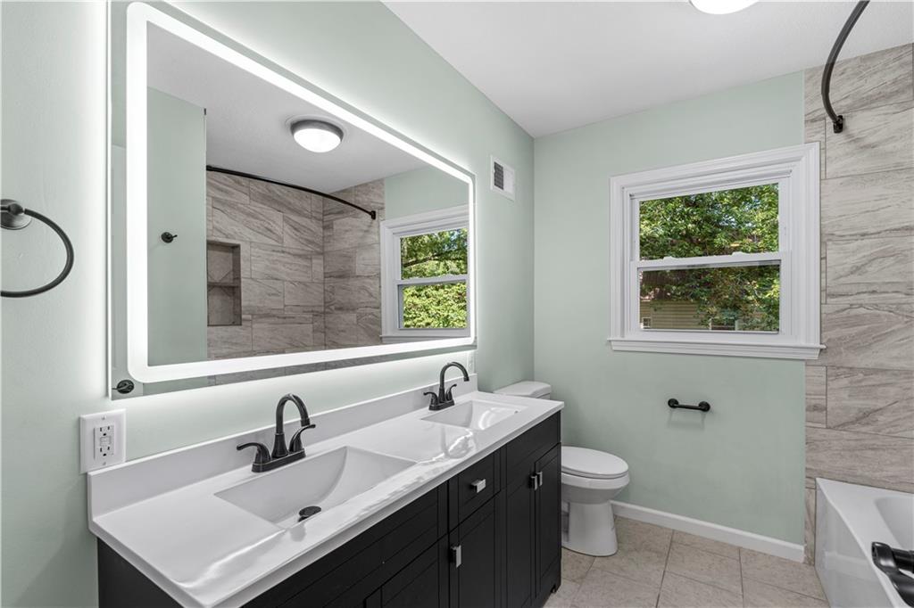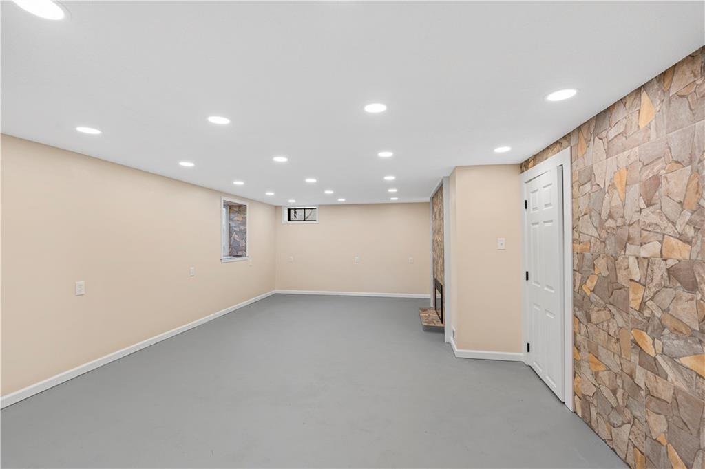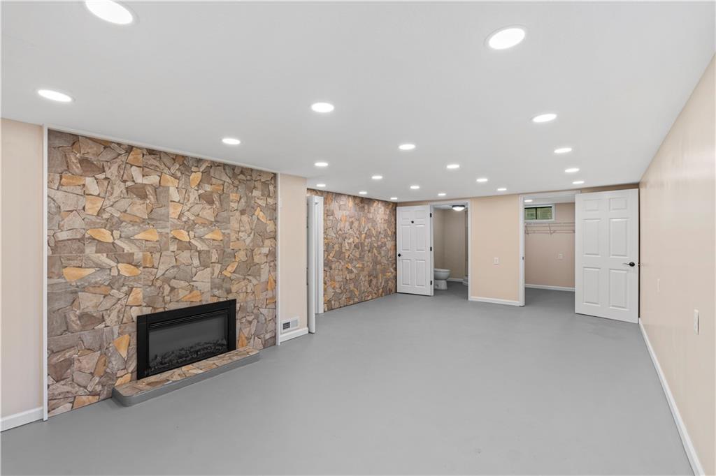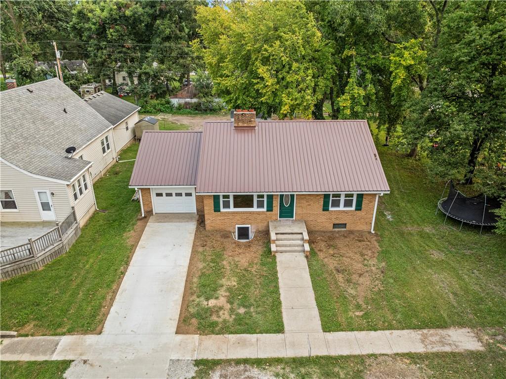 This 3 bedroom, 3 bath home pairs the timeless curb appeal of a Mid-Century brick ranch with the comfort of a full modern remodel. Step inside to discover superior lighting and bright, airy finishes throughout. Refinished hardwood floors, fresh paint, modern fixtures, and a cozy fireplace set the tone in the main living room. The eat-in kitchen and dining area flow together beautifully with updated cabinetry and stylish tile work. The main level offers two bedrooms and two brand-new bathrooms with custom tile showers and sleek vanities. The lower level features a true third bedroom retreat with its own full bath and expansive walk-in closet, along with an unfinished bonus room offering potential for a future fourth bedroom, home office, or second living area. The remodel was completed in 2025, including major system updates: HVAC, water heater, electrical, and plumbing. Outside, you’ll love the brand-new concrete driveway, a metal roof for lasting durability, and the convenience of a drive-through garage with two overhead doors. Move-in ready, beautifully bright, and updated where it matters most, this Mid-Century brick ranch is ready for its next chapter.