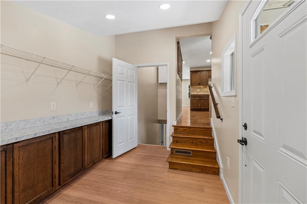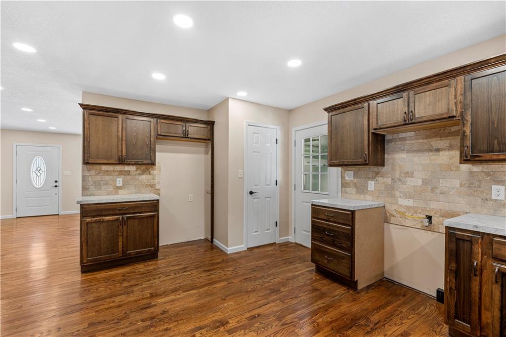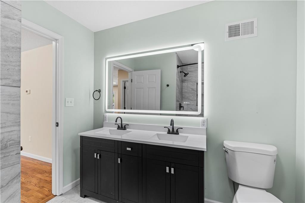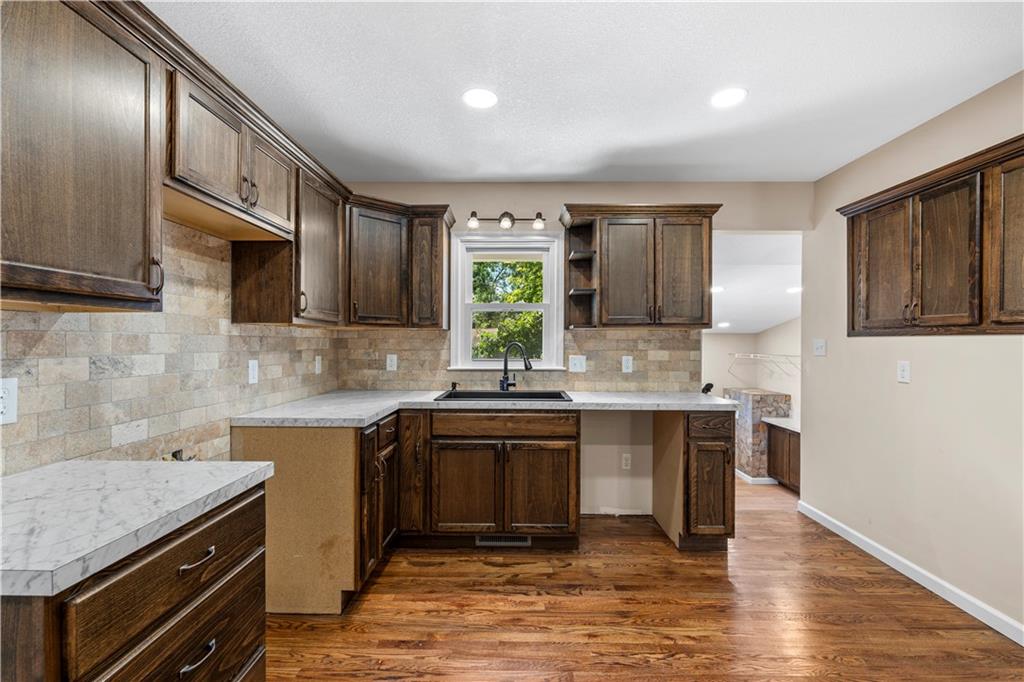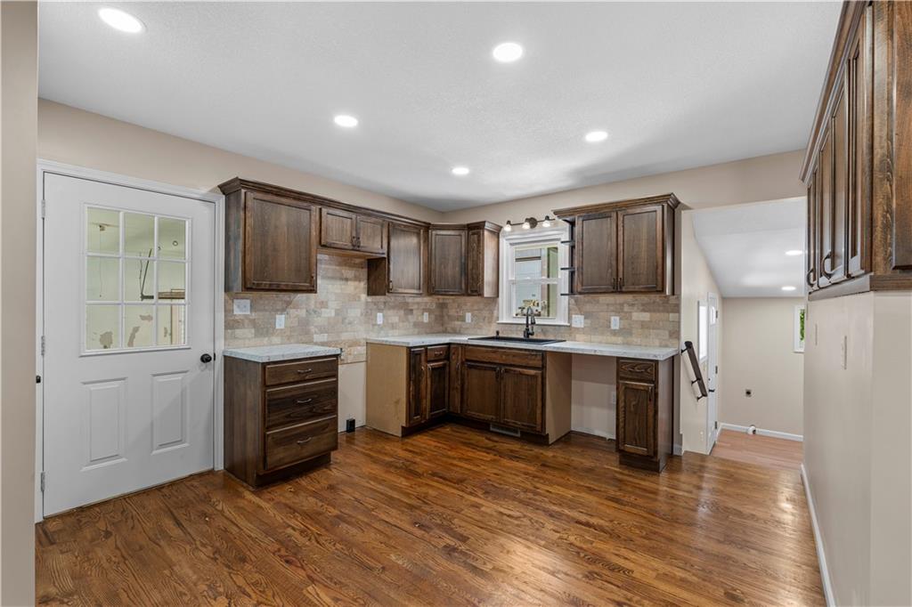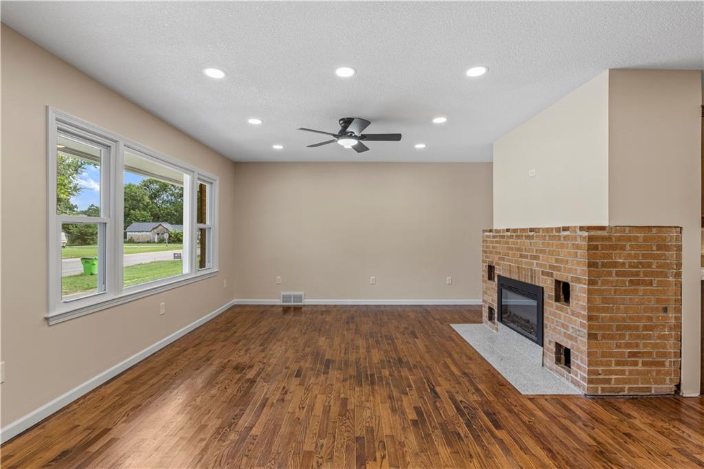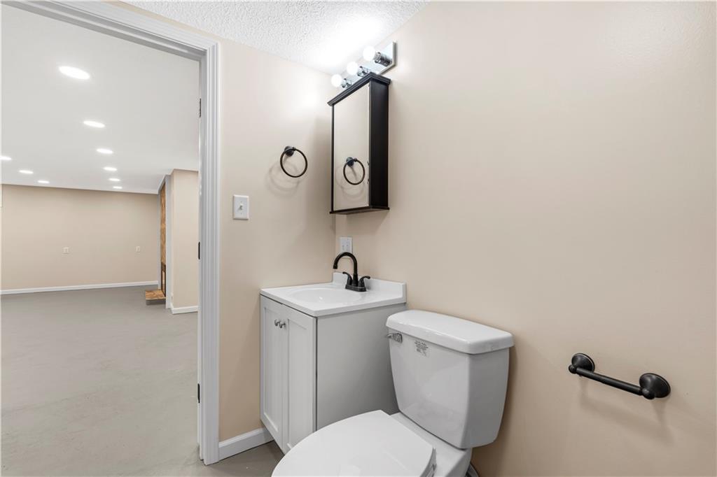 This 3 bedroom, 3 bath home pairs the timeless curb appeal of a Mid-Century brick ranch with the comfort of a full modern remodel. Step inside to discover superior lighting and bright, airy finishes throughout. Refinished hardwood floors, fresh paint, modern fixtures, and a cozy fireplace set the tone in the main living room. The eat-in kitchen and dining area flow together beautifully with updated cabinetry and stylish tile work. The main level offers two bedrooms and two brand-new bathrooms with custom tile showers and sleek vanities. The lower level features a true third bedroom retreat with its own full bath and expansive walk-in closet, along with an unfinished bonus room offering potential for a future fourth bedroom, home office, or second living area. The remodel was completed in 2025, including major system updates: HVAC, water heater, electrical, and plumbing. Outside, you’ll love the brand-new concrete driveway, a metal roof for lasting durability, and the convenience of a drive-through garage with two overhead doors. Move-in ready, beautifully bright, and updated where it matters most, this Mid-Century brick ranch is ready for its next chapter.