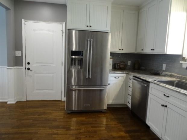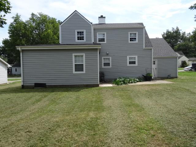 1.5 Story/full basement. Original wood floors on both living levels. Remodeled in 2023 replacing the roof & guttering. The cook in the family will love the remodeled stainless steel kitchen/gas range, dishwasher, trash compactor, French door frig, Pantry. DR has wood floors, crown molding and bead board wainscoting. Living Room is bright & cheery with crown molding & fireplace. NOTE: (Check it out before using it.) Master Bedroom and bath round out the 1st floor living space. Master bath has lg. glass walk-in shower, pocket door into closet. Closet has a 2nd laundry hook up. Arched doorways add charm to the living area. 1/2 bath with LVP flooring on 1st floor. Wide stairs to (3) bedrooms and full bath on the 2nd floor. Ship lap on some of the walls, linen closets. Original wood floors. New windows throughout house. Stairs to the basement where furnace and water heater are located and hook-ups for laundry. Wall of shelving stays with the house. New Concrete board covers the outside of the house. 1 Car Garage with shelving, door out to a concrete patio. 2 trees in the back. 1/2 block for kids to walk to grade school. Close to the park & Aquatic Center. Walking Trails, Senior Center, Pickleball Court, Hospital.