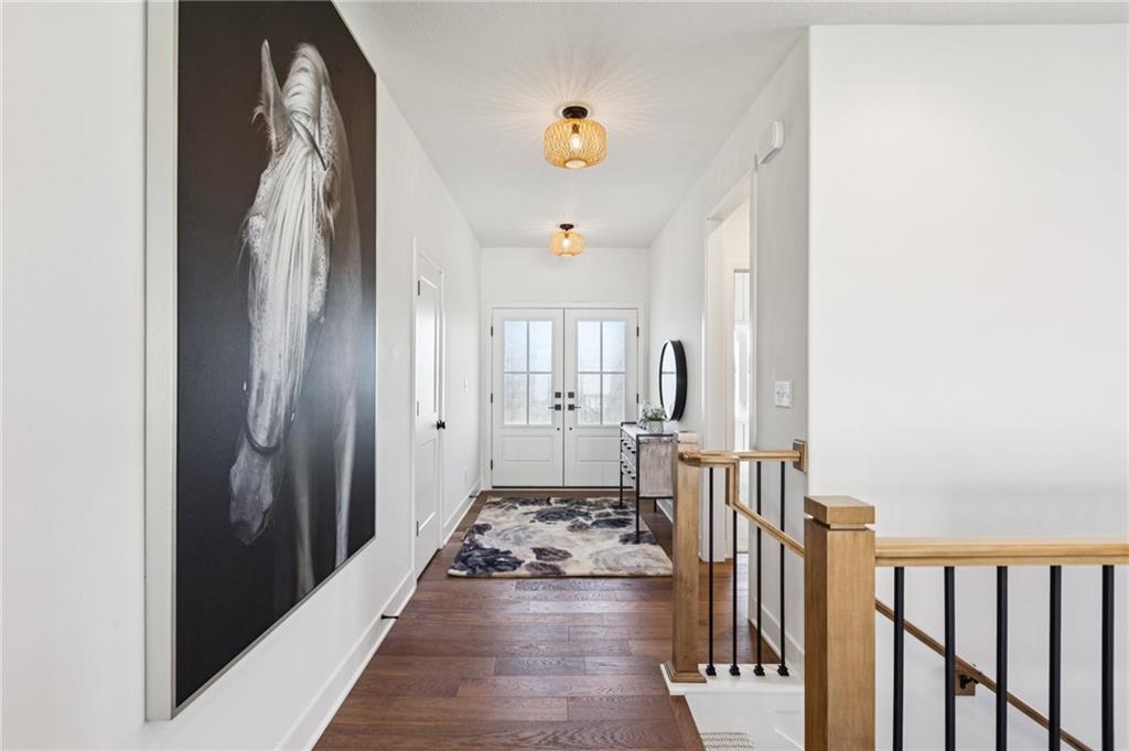 Olympus Custom Homes offers reverse on lot 47 in Homestead of Liberty. This new construction exceptional reverse 1.5 story is near finished. Main level mostly hardwoods. 19 foot big covered patio overlooking this premium lot. Custom cabinets, upscale countertops, kitchen island, large oversized pantry. Incredible master suite with luxurious free standing tub and tile shower with master walk in closet. Vaulted ceilings, added trim details are a signature of Olympus! The lower level has wonderful entertainment room, two large bedrooms with walk in closets. This is a must see! Taxes and Square footage may vary. Home is ready for move in!