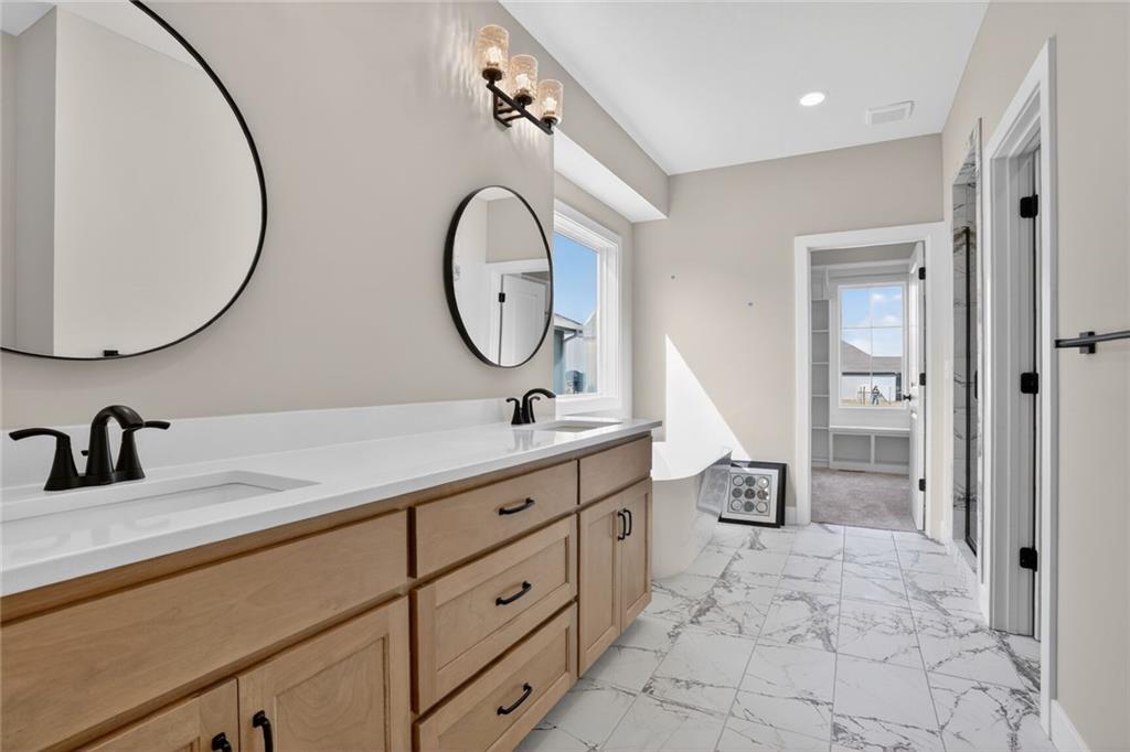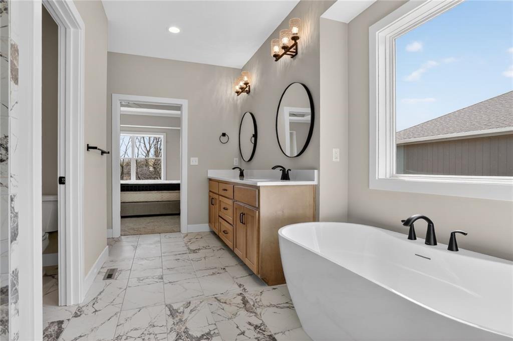 Move In Ready! ! ! Lot 306 Welcome to The Scottsdale Reverse by New Mark Homes – a stunning 4-bedroom, 3-bath, home! The main level showcases a spacious open-concept living area designed for modern living & entertaining, complimented by a versatile bedroom/office, generous mud room, & convenient laundry room. The spa-like primary suite is a true retreat, featuring double vanities, a relaxing soaker tub, walk-in shower, and an expansive walk-in closet. The finished lower level offers additional living space with a large rec room, two bedrooms each with walk-in closets, a full bath, and abundant unfinished storage. This thoughtfully designed floor plan blends style, function, and comfort—perfect for today’s lifestyle in a great neighborhood with Community Pools, Club House, Trails, Fishing Pond and Park Hill Schools!
