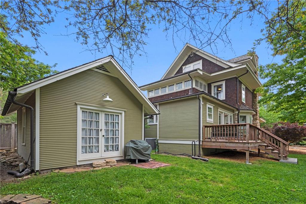 This is one of those homes people slow down to admire—and now, it can be yours. Built in 1908 in Lawrence’s very first suburb, Breezedale, this iconic home is officially recognized on both the National and Local Historic Registers. But what really makes it special isn’t just the history—it’s how beautifully it lives today. Inside, the rooms feel bright, welcoming, and thoughtfully updated. The family room is filled with natural light, the kitchen has been remodeled for modern living, and the bathrooms have been refreshed while still honoring the home’s original character. The primary suite is surprisingly spacious, complete with a walk-in closet—something you don’t often find in a home of this era. The third-floor loft is a standout feature. It’s open, airy, and incredibly flexible—perfect for a creative studio, game room, second living space, or even an additional primary suite. It’s the kind of space that grows and changes with you. Outside, the property really opens up. Sitting on two full city lots, the yard feels private and peaceful, surrounded by mature trees and established landscaping. There’s also a detached studio with its own bathroom, closet, and windows—ideal for guests, a home office, art space, or whatever you imagine. What makes this home even more special is its location. You’re tucked into a quiet, residential setting, yet just minutes from downtown Lawrence, local shops and restaurants, parks, and the University of Kansas. It’s the best of both worlds—calm at home, connected to everything. This isn’t just a house. It’s a landmark, a legacy, and a rare opportunity to own a true piece of Lawrence history.