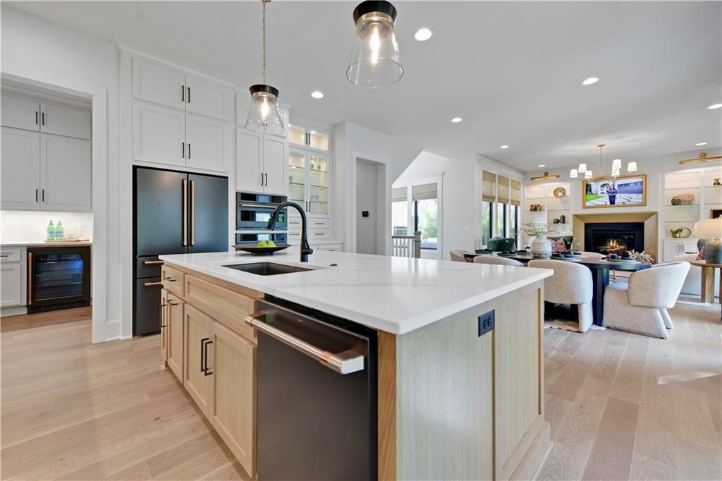 Welcome to 5215 W. 71st Terrace, a stunning residence built by the award-winning James Engle Custom Homes fully furnished and ready for viewing featuring the highly sought-after Aurora floor plan. This home features decorator curated selections, making this a great opportunity for buyers that prefer a more streamlined new home buying approach. Step inside to discover 5 bedrooms 5 full, and 1 half baths. The property has an incredible opportunity for a home office complete with a cozy fireplace and picturesque views of the amazing courtyard that is beautifully decorated and landscaped, creating the perfect setting for productivity or relaxation. The heart of the home is the gourmet kitchen, featuring high-end GE Café appliances and an additional prep kitchen as well as a walk in pantry making it a chef’s dream. The finished lower level is equally impressive, boasting a stylish wine closet, bar, and a plethora of additional features that enhance both comfort and convenience. Home features permanent holiday exterior soffit lighting making this great and convenient for any and all occasions. This home will truly be turn key and ready for immediate occupancy! Don’t miss your chance to experience this exceptional property.