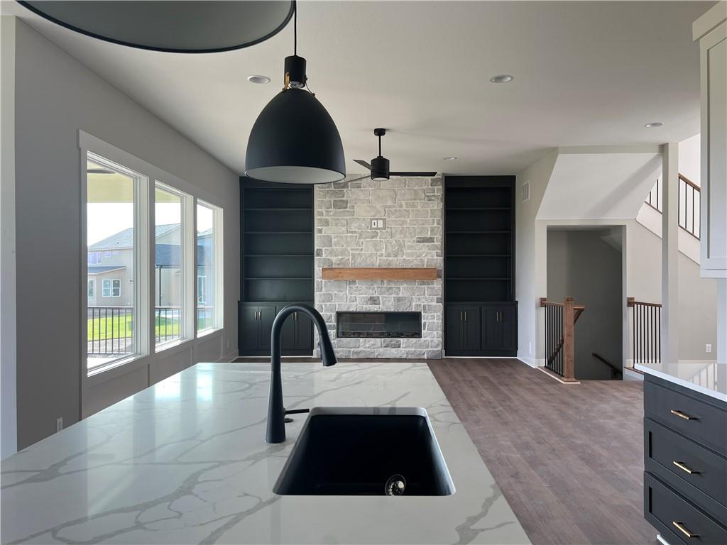 Ready in December of 2025! Take a look at the newest Inspired Homes floor plan: the 2-story Modern Euro Delano, now available in Pryor Ridge, Lee’s Summit! You will be immediately impressed by the grand entry with 18 ft ceilings, which leads directly to the open concept great room & kitchen! Enjoy your spacious main living area, complete with a floor-to-ceiling fireplace & built-in cabinets, a large dining area with wall-to-wall windows, & a custom designed kitchen with a HUGE walk-in pantry. Tucked away on the main level, you will also find a private bedroom & full bathroom, perfect for visiting guests or for an additional playroom or office! And don't forget about the pocket office near the front door, with a window for natural light! Heading upstairs to the second level, you will find three large bedrooms with walk-in closets, built-ins, & one having a private bathroom. Towards the back of the hall, you will find the primary bedroom with a luxurious bathroom, complete with a soaker tub, two separate vanities, & a large dual-headed shower. Directly adjacent is a large walk-in closet BIGGER than you have ever seen before! Not only does the closet have two separate wings, but it also has a BONUS ROOM hidden in the back, which can be used as a hide-away room, additional office, workout space, meditation room, play area--your options are only limited by your imagination! Last, but not least, the full basement is FINSIHED Featuring over 1,000 sq ft including a 6th bedroom, 5th bathroom, rec room and full-size wet bar perfect for entertaining and hosting guests. Located in the highly sought-after Pryor Ridge neighborhood in Lee's Summit, this property offers a lifestyle characterized by both comfort and convenience. Notably, shopping destinations and restaurants are just minutes away, providing homeowners with the opportunity to enjoy the charm of a countryside atmosphere while benefiting from the practicality of urban living right in Pryor Ridge.