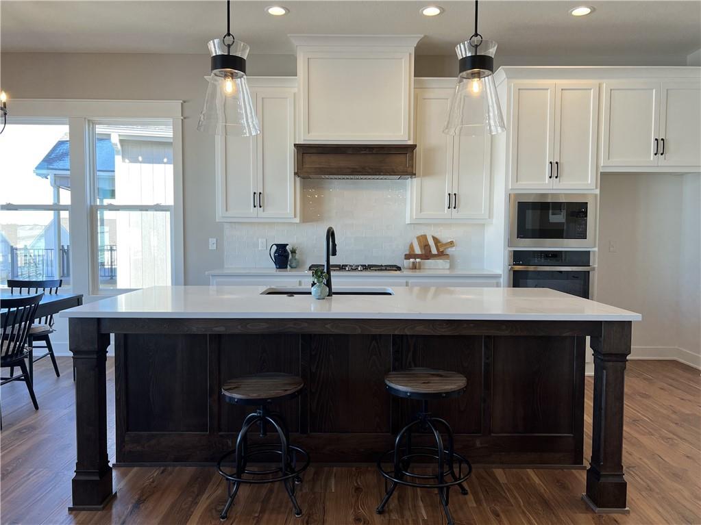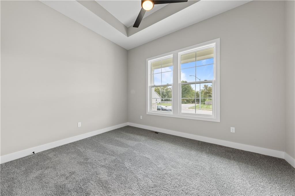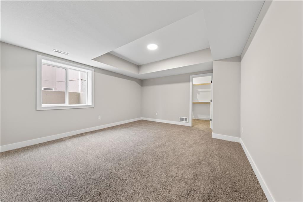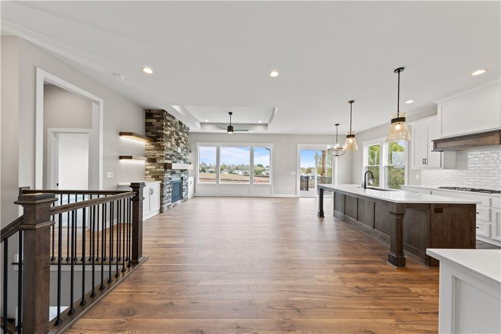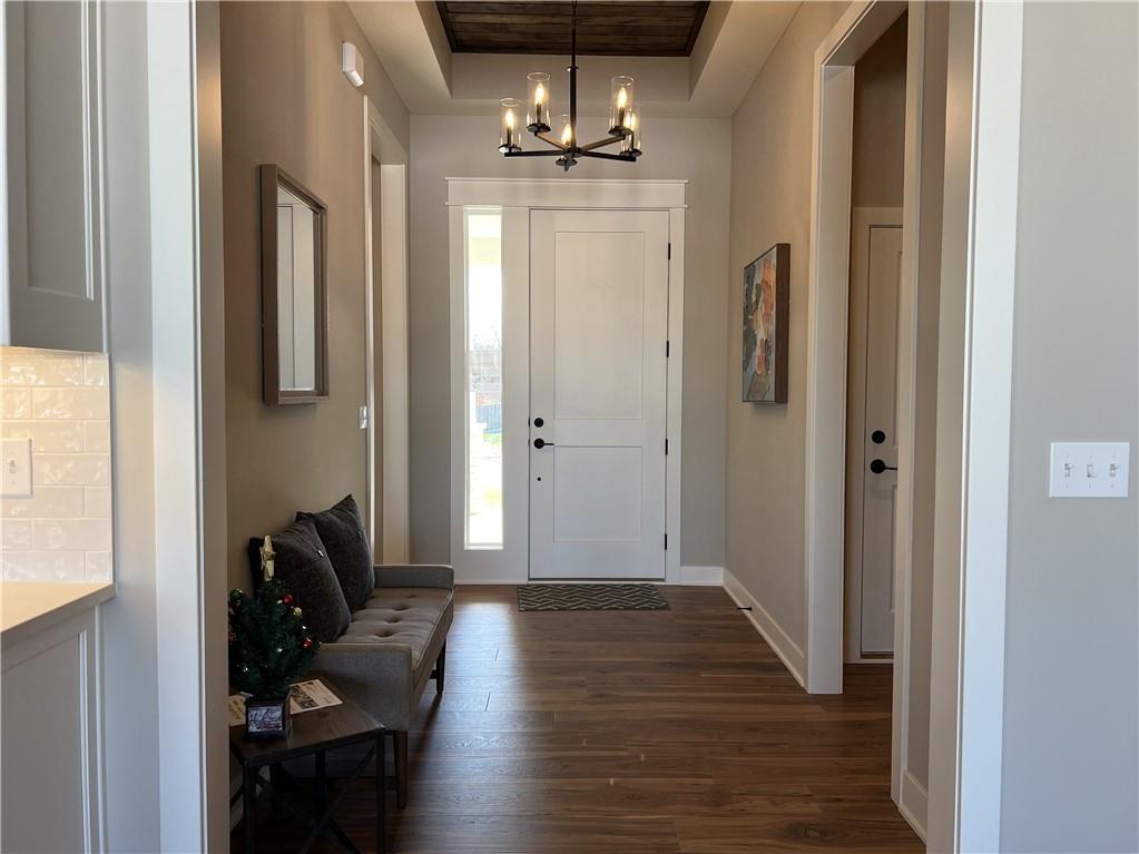 This Inspired Homes Fairfield Reverse 1.5 Story on a WALKOUT lot is the total package — inside and out! From the moment you step into the grand, light-filled foyer, you'll feel the elevated design and thoughtful layout unfold before you. Soaring 10’ ceilings, oversized custom windows, and high-end upgrades set the stage for style and sophistication. The stunning great room is a showstopper — featuring a coffered ceiling with rich wood accents and a statement stacked-stone fireplace that anchors the space perfectly. The open-concept kitchen is a chef’s dream: custom cabinetry, a massive island, GE stainless built-ins including a gas cooktop, and an extra-large walk-in pantry to keep everything organized and out of sight. The main-floor primary suite is a true retreat with tray ceiling, spa-style bath, dual vanities with custom tower storage, and a huge walk-in shower. Bonus? The laundry is cleverly tucked off the primary closet — making daily life easier than ever. The second main-level bedroom offers ideal flexibility as a guest suite or home office. Downstairs, the finished lower level impresses with 9-foot ceilings, a spacious rec room with a sleek wet bar — perfect for game days, movie nights, or entertaining — plus two more generous bedrooms and a full bath. Step outside to enjoy your covered deck AND patio — the perfect setting for morning coffee or sunset drinks. All of this is nestled in Kensington Farms, where residents enjoy access to a sparkling community pool, playground, walking trails, and easy access to Downtown Lee’s Summit, Summit Fair, top schools, shopping, dining, and more.