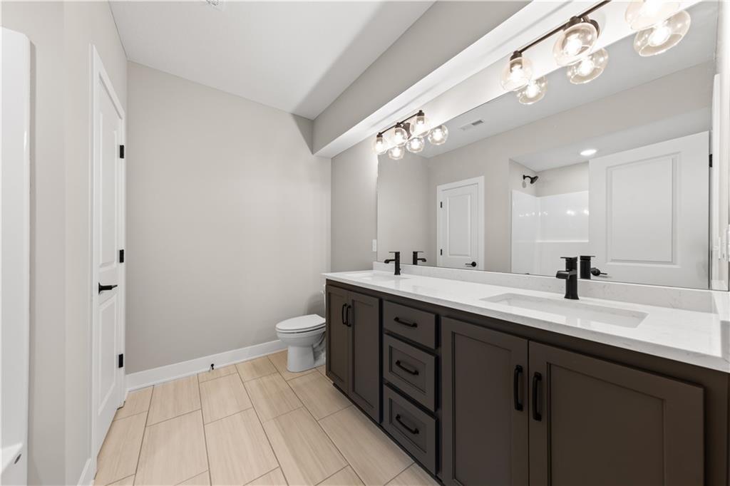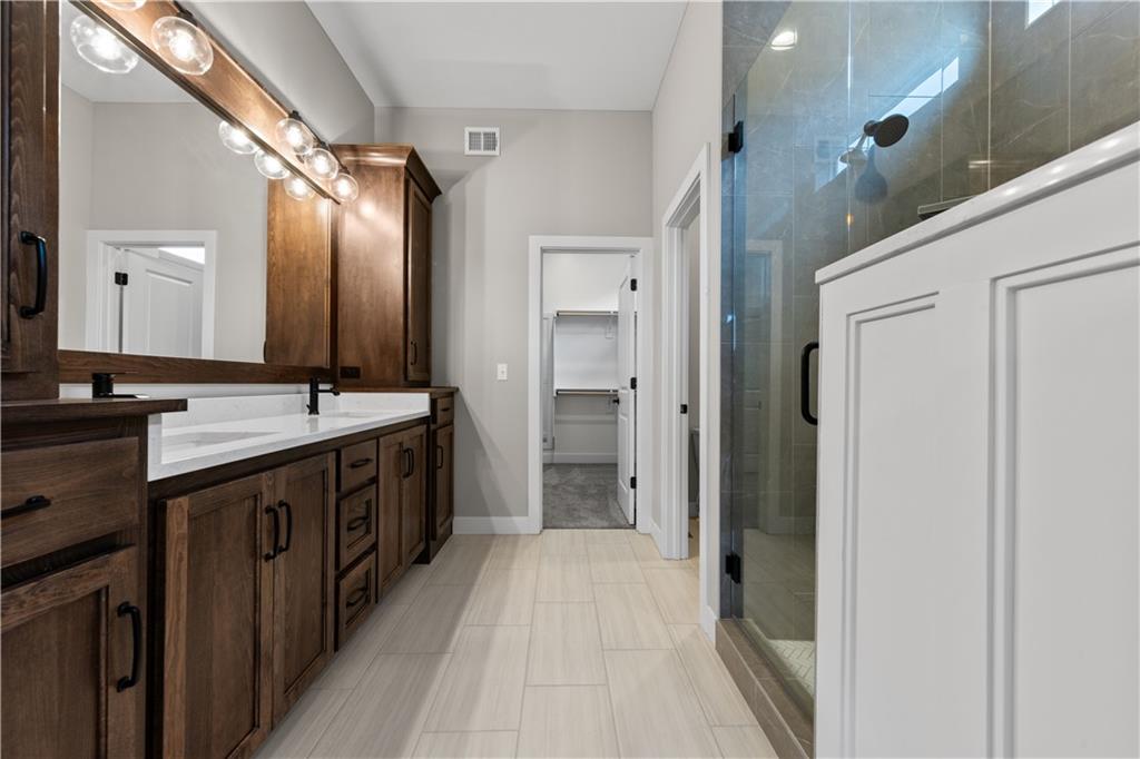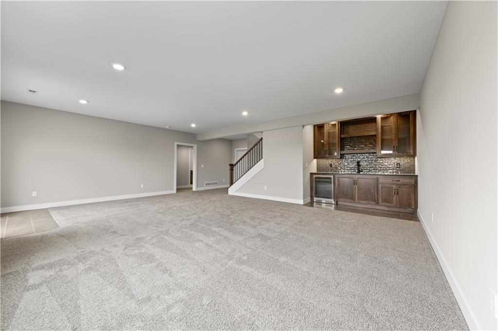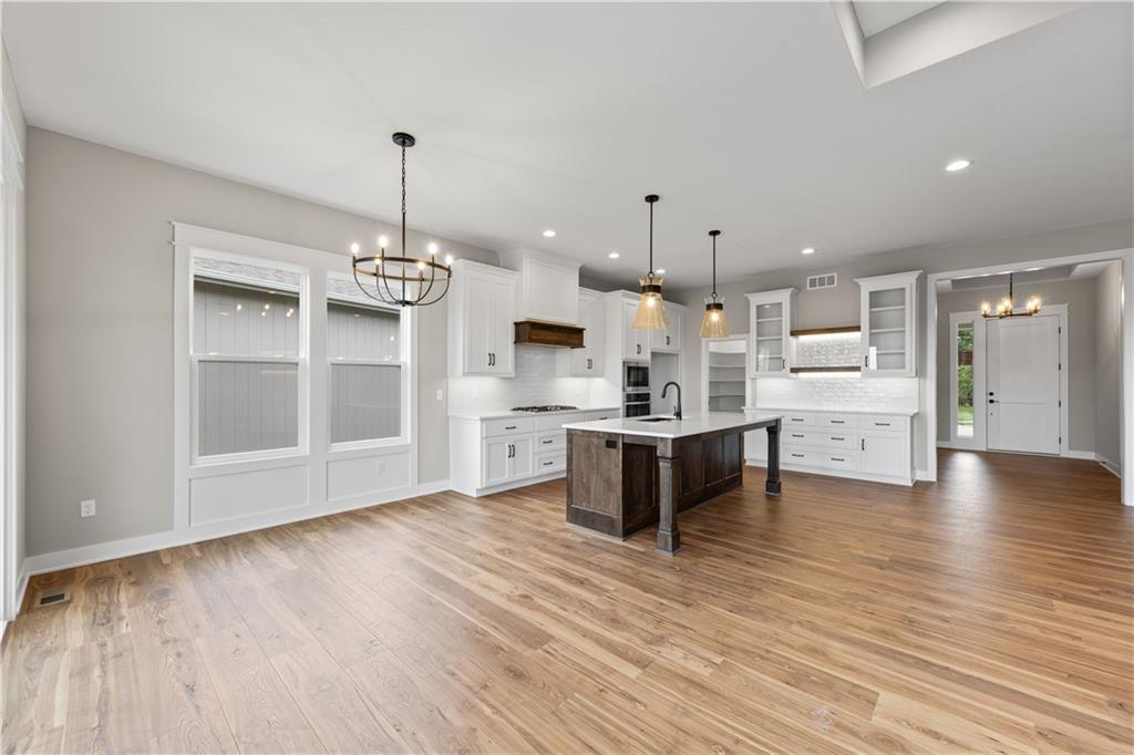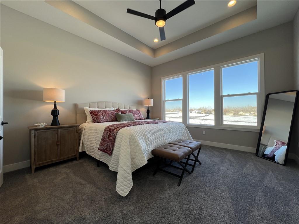 This Inspired Homes Fairfield Reverse 1.5 Story on a WALKOUT lot is the total package — inside and out! From the moment you step into the grand, light-filled foyer, you'll feel the elevated design and thoughtful layout unfold before you. Soaring 10’ ceilings, oversized custom windows, and high-end upgrades set the stage for style and sophistication. The stunning great room is a showstopper — featuring a coffered ceiling with rich wood accents and a statement stacked-stone fireplace that anchors the space perfectly. The open-concept kitchen is a chef’s dream: custom cabinetry, a massive island, GE stainless built-ins including a gas cooktop, and an extra-large walk-in pantry to keep everything organized and out of sight. The main-floor primary suite is a true retreat with tray ceiling, spa-style bath, dual vanities with custom tower storage, and a huge walk-in shower. Bonus? The laundry is cleverly tucked off the primary closet — making daily life easier than ever. The second main-level bedroom offers ideal flexibility as a guest suite or home office. Downstairs, the finished lower level impresses with 9-foot ceilings, a spacious rec room with a sleek wet bar — perfect for game days, movie nights, or entertaining — plus two more generous bedrooms and a full bath. Step outside to enjoy your covered deck AND patio — the perfect setting for morning coffee or sunset drinks. All of this is nestled in Kensington Farms, where residents enjoy access to a sparkling community pool, playground, walking trails, and easy access to Downtown Lee’s Summit, Summit Fair, top schools, shopping, dining, and more.