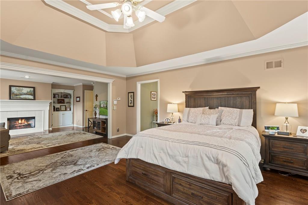 Welcome to your dream home in the Loch Lloyd! This gorgeous residence is situated on one of the most beautiful treed lots, a 1-minute walk to the clubhouse, pool, & golf course. You'll be captivated by the sweeping staircase that sets the tone for updated elegance throughout. Most everything in this home is NEW or recently updated! Notice quality hardwood floors, exquisitely detailed woodwork trim, & plantation shutters throughout. The countertops in the kitchen complement the oversized island and top-of-the-line stainless steel appliances, making it a chefs paradise. Enjoy views from the kitchen that overlook the Treks deck and a HUGE .53 acre yard, perfect for entertaining and family fun. Relax around the cozy fire pit surrounded by lush trees and manicured green space. This home offers peace and tranquility well away from future construction, while still being just steps away from the clubhouse and amenities. The fully renovated (2024) LL features a walk-out design w/plenty of natural daylight, a bar, fireplace, theater area, 1/2 BA & hobby room, ideal for relaxation and entertainment. Upstairs, discover 4 spacious bedrooms, including a wonderful primary suite that boasts an adjacent hearth room, heated floors in the luxurious primary bath, a HUGE walk-in shower & a large jacuzzi tub for ultimate relaxation. A secondary back stairway makes for convenient quick access to the kitchen, laundry area, and the three-car garage, equipped with Garage Tek walls and spacious built-in utility cabinets. This home truly has it all, and the ‘extras’ just add to its charm, such as four cozy fireplaces, 3 beverage refrigerators, and a breezy attic fan. The new fitness center is just a short walk and offers indoor and outdoor tennis and pickle ball courts. Don’t forget the nearby namesake lake offers fishing, boating, and water fun. Don’t miss your chance to own this stunning property and enjoy the Loch Lloyd lifestyle. Schedule your showing today!