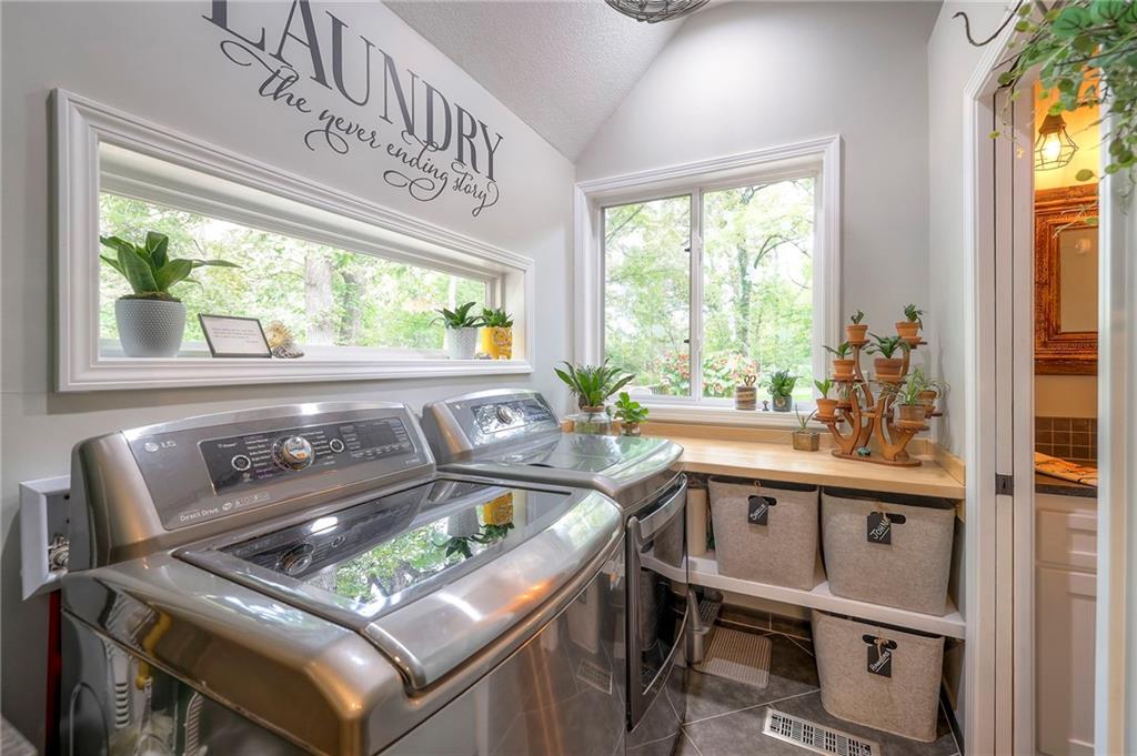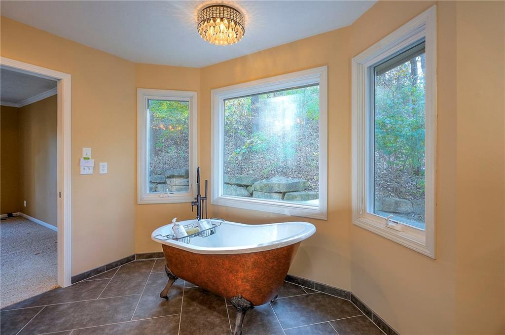 Nestled on nearly 2 acres of serene, wooded privacy, this stunning property offers a true outdoor oasis complete with composite decking, extensive landscaping, and a cozy firepit—perfect for gatherings or quiet evenings under the stars. Step inside to a beautifully updated home where a formal dining room and a living room with a striking wall of windows greet you as you enter the home. The main level office offers privacy and flexibility for work or study. At the heart of the home, the hearth room impresses with soaring 19’ vaulted ceilings and a dramatic floor-to-ceiling brick fireplace. The remodeled kitchen features granite countertops and a huge island, seamlessly connecting to a versatile mudroom that also functions as a butler’s pantry—complete with abundant cabinetry, a sink, and a beverage refrigerator. Retreat to the main-level primary suite, where private deck access, a claw-foot tub, and a spacious shower create a true spa-like escape. Upstairs, three generously sized bedrooms provide comfort for family and guests alike. The lower level extends the home’s functionality with abundant storage and a finished rec room area, perfect for relaxing or entertaining. This home has been meticulously maintained by the owners and has many updates throughout—including fresh paint, trim, gutters, garage doors, new carpet, 3 zones of heating and cooling - main level high-end heatpump, 2nd level and 3rd bedroom over garage (mini-split). So many great featues make this a must see!