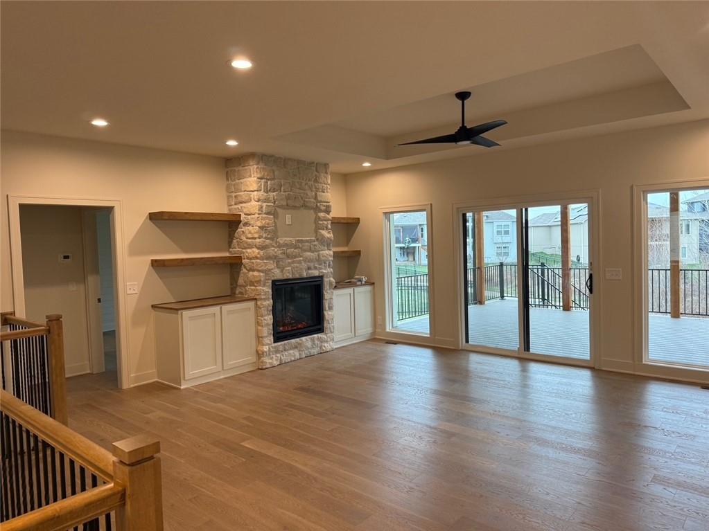 Ready Now! The Addison Reverse Plan by Brian Scott Homes – Lot 99 Boulder Hills | Backing to Trees & Trails |Walk-up/Walk-out Welcome to the Addison, an exceptional reverse 1.5-story home located on coveted Lot 99 in Boulder Hills, offering a rare walk-out/walk-up lot that backs to mature trees and scenic walking trails. This thoughtfully designed 4-bedroom, 3.5 bathroom home is ready now to enjoy your backyard oasis. Discover a spacious, open layout with high-end finishes and custom details inside. The gourmet kitchen is a dream, featuring custom cabinetry, quartz countertops, a large center island, and a walk-in pantry. The adjacent great room showcases a stunning stone fireplace and plenty of space for entertaining. Walk out from the main level to a huge covered deck—perfect for enjoying peaceful, treed views year-round. The front bedroom welcomes natural light through oversized windows, while the primary suite boasts a custom feature wall and direct access to the deck. The spa-like primary bathroom includes dual vanities, a freestanding tub, and a luxurious walk-in shower. You'll love the generous walk-in closet conveniently connected to the laundry room. The oversized garage is a standout feature, measuring an impressive 24.6' x 29.6' with a 6' x 7' bump-out—perfect for your extended truck, workbench, or recreational gear. Downstairs, the walk-out/walk-up lower level offers a large recreation room, two additional spacious bedrooms, and a full bathroom—ideal for guests or family fun. This is the last available home in Boulder Hills backing to the private tree line—don't miss your chance to own in this premier community! Boulder Hills Amenities Include: a beautiful pool with a waterfall, an outdoor kitchen area, walking trails, a playground, a pickleball court, and a community clubhouse. See why Boulder Hills is one of the most desirable neighborhoods around!