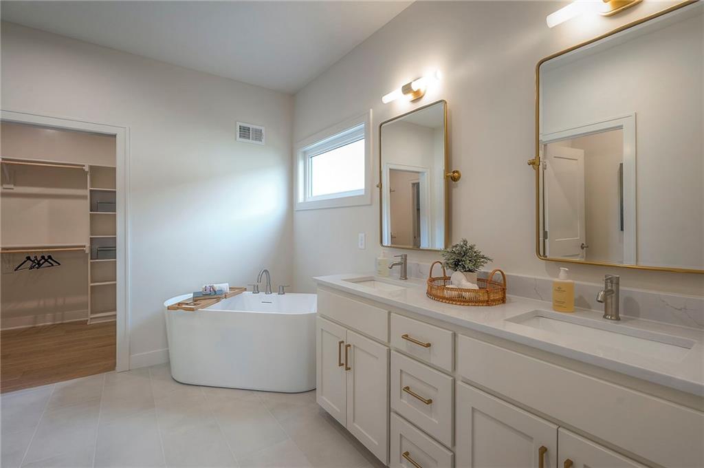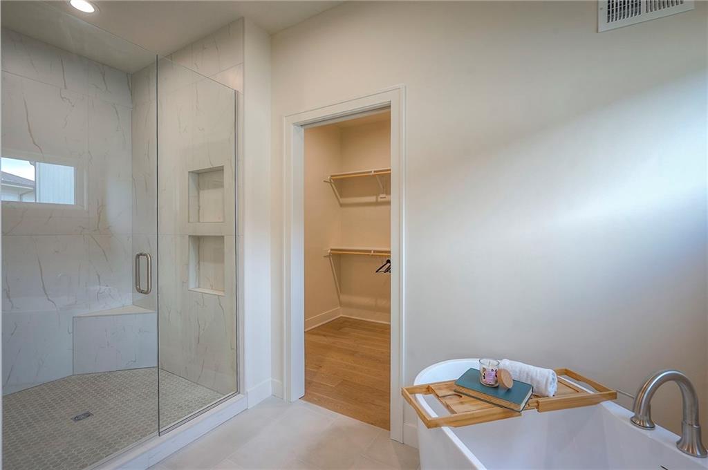 Ready Now! The Addison Reverse Plan by Brian Scott Homes – Lot 99 Boulder Hills | Backing to Trees & Trails |Walk-up/Walk-out | Welcome to an exceptional reverse 1.5-story that backs to mature trees and scenic walking trails. Spacious 25’ deep x 30’ wide garage designed to comfortably accommodate two full-size SUVs, with additional room for storage or workspace. A dedicated 6’ x 8’ rear shop area offers the perfect setup for tools, hobbies, or organized storage. This thoughtfully designed 4-bedroom, 3.5-bathroom home is ready now to enjoy your backyard oasis. Discover a spacious, open layout with high-end finishes and custom details inside. The gourmet kitchen is a dream, featuring custom cabinetry, quartz countertops, a large center island, and a walk-in pantry. The adjacent great room showcases a stunning stone fireplace and plenty of space for entertaining. Walk out from the main level to a huge covered deck—perfect for enjoying peaceful, treed views year-round. The front bedroom welcomes natural light through oversized windows, while the primary suite boasts a custom feature wall and direct access to the deck. The spa-like primary bathroom includes dual vanities, a freestanding tub, and a luxurious walk-in shower. You'll love the generous walk-in closet conveniently connected to the laundry room. Downstairs, the walk-out/walk-up lower level offers a large recreation room, two additional spacious bedrooms, and a full bathroom—ideal for guests or family fun. This is the last available home in Boulder Hills backing to the private tree line—don't miss your chance to own in this premier community! Boulder Hills Amenities Include: a beautiful pool with a waterfall, an outdoor kitchen area, walking trails, a playground, a pickleball court, and a community clubhouse. See why Boulder Hills is one of the most desirable neighborhoods around!