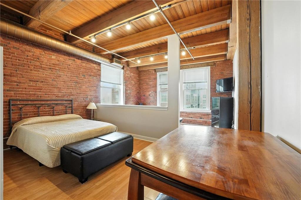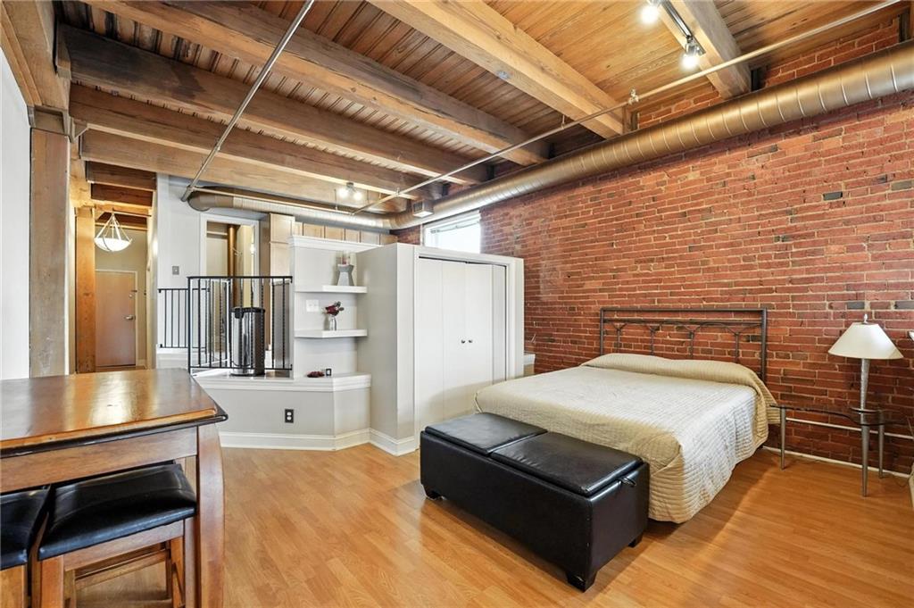 Historic charm, modern amenities, low HOA dues, and a downtown location that keeps you connected to the best of Kansas City-Welcome to Loft #412 in 700 Broadway at Soho, right in the Garment District. This 729 sq. ft. studio is all about style and substance, mixing exposed brick, rich hardwood floors, oversized windows, and a tongue-and-groove timber ceiling. The open layout carves out space for living, working, and sleeping, while the elevated kitchen overlooks it all. Outfitted with stainless steel appliances, granite counters, extended prep space, and plenty of room to move, it’s as functional as it is inspirational. You’ll also find a full bath, built-ins, ample closet space, an in-unit washer/dryer, and of course, those city views. Residents of this boutique building benefit from a gym, business lounge, game room with a kitchenette and bar, media room, laundry facilities, and bike storage. Parking is leased—attached garage spots are assigned by lottery, and a gated lot on Bank Street offers additional options. Step outside, and the city is yours. Grab coffee, dinner, or drinks nearby, wander the City Market for fresh finds, or hop the streetcar to explore the Crossroads, Power & Light District, and one day, Berkley Riverfront Park. Investor-friendly with rental potential, but no Airbnb. Offered fully furnished for a true turn-key investment.