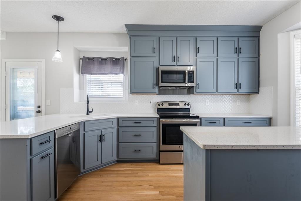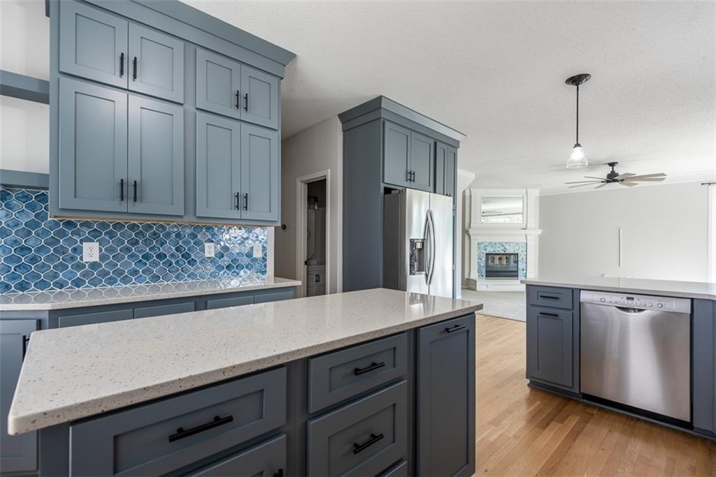 Stunning home that has been thoughtfully updated inside and out. New construction feel on a tree lined street! New or newer items including, roof and gutters, AC, light fixtures, kitchen cabinets updated, sink and faucet, backsplash, quartz countertops, gorgeous refinished hardwood floors, stair spindles and high traffic carpet on stairs, landscaping in the front and back yard, deck with pergola made with weather treated wood, epoxy coated garage floor for a clean, polished look, wall paint, trim paint, hardware on all doors, gas log fireplace with a remote control, half bath, laundry room tile. This home blends style, function and comfort ideal for both everyday living and entertaining. Spacious walk in closets in the super spacious primary suite, including a bonus room that can be used as additional closet space, office, nursery or a workout room. Large deck with pergola and level yard. The basement is finished with a full bathroom and wet bar perfect for entertaining. Unfinished area of the basement gives you plenty of storage room. With all major updates completed, all you need to do is move in! *Buyer's agent to verify all measurements, taxes, and school information.* All offers subject to lien holder release and lender acceptance of contract.