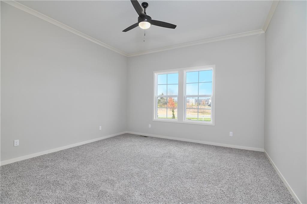 Welcome to the Maintenance Provided Ranch Villas. This residence is move in ready and showcases an open floor plan with 10-foot ceilings and refined finishes throughout. Maintenance-free living includes lawn care, snow removal, and all exterior upkeep, including roof replacement. The main level is thoughtfully designed with a spacious living room featuring a stunning fireplace and abundant natural light. The gourmet kitchen is appointed with stainless steel appliances, custom cabinetry, under-cabinet lighting, and a generous walk-in pantry. Additional conveniences on the main floor include a mudroom, built-in desk area and laundry room. Hardwood flooring enhances the entry, living room, kitchen, mudroom, office, and dining areas. The primary suite offers a walk-in closet, raised vanity tops, and a spa-inspired bathroom with beautifully tiled shower walls and floors. The lower level expands the living space with a large recreation room complete with a dry bar, two additional bedrooms, and a full bathroom—bringing the total to four bedrooms.