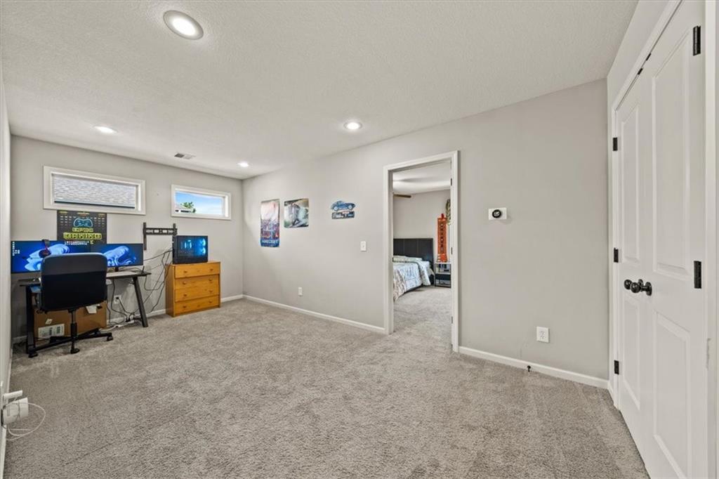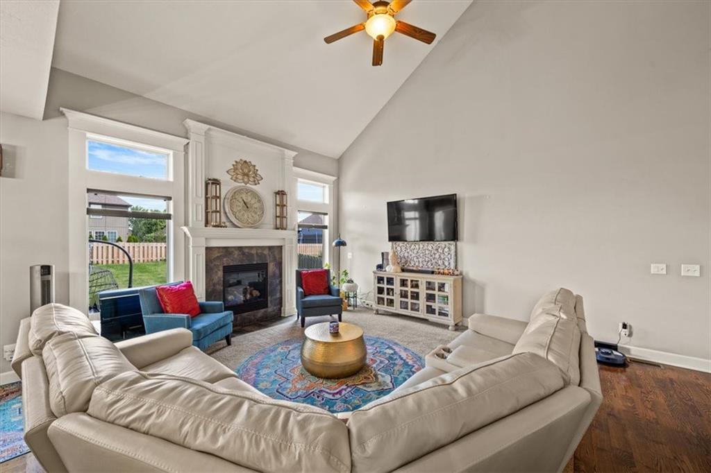 Back active again through no fault of sellers. Welcome to this beautiful 1.5-story home located in the highly sought-after Tiffany Woods neighborhood, within the prestigious Park Hill School District. Built in 2013, this residence offers a spacious and open floor plan ideal for both entertaining and everyday living. Featuring a main level luxurious master suite, a generous walk-in closet, double vanities, a Jacuzzi tub, and a shower for the ultimate retreat. A gourmet kitchen with granite countertops, stainless steel appliances, a walk-in pantry, and gleaming hardwood floors. The open-concept design flows seamlessly into the dining and living areas, creating a warm and welcoming space perfect for family gatherings. A formal living room provides additional space for entertaining or quiet gatherings. The convenience of a main level laundry room adds everyday functionality to this elegant layout. The second level boasts a large loft area, 3 generously sized bedrooms, and 2 full bathrooms, providing plenty of room for relaxation, play, or a home office. The fully finished lower level expands your living space with a large family room, a wet bar equipped with a dishwasher and a place to hold a refrigerator, a bedroom, and an additional full bathroom ideal for guests or multigenerational living. Outside, enjoy a private patio and a level backyard with an in-ground sprinkler system, perfect for relaxing or entertaining. Residents of this vibrant community also have access to walking trails and a neighborhood pool. Located just minutes from Zona Rosa’s shopping and dining options and only minutes from the new Kansas City International Airport, this home offers unmatched convenience and lifestyle. With a 3-car garage wired and ready for EV charging, this home is a rare find. Don’t miss your chance to make it yours! Schedule a showing today.