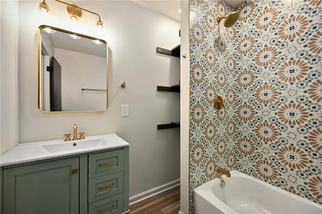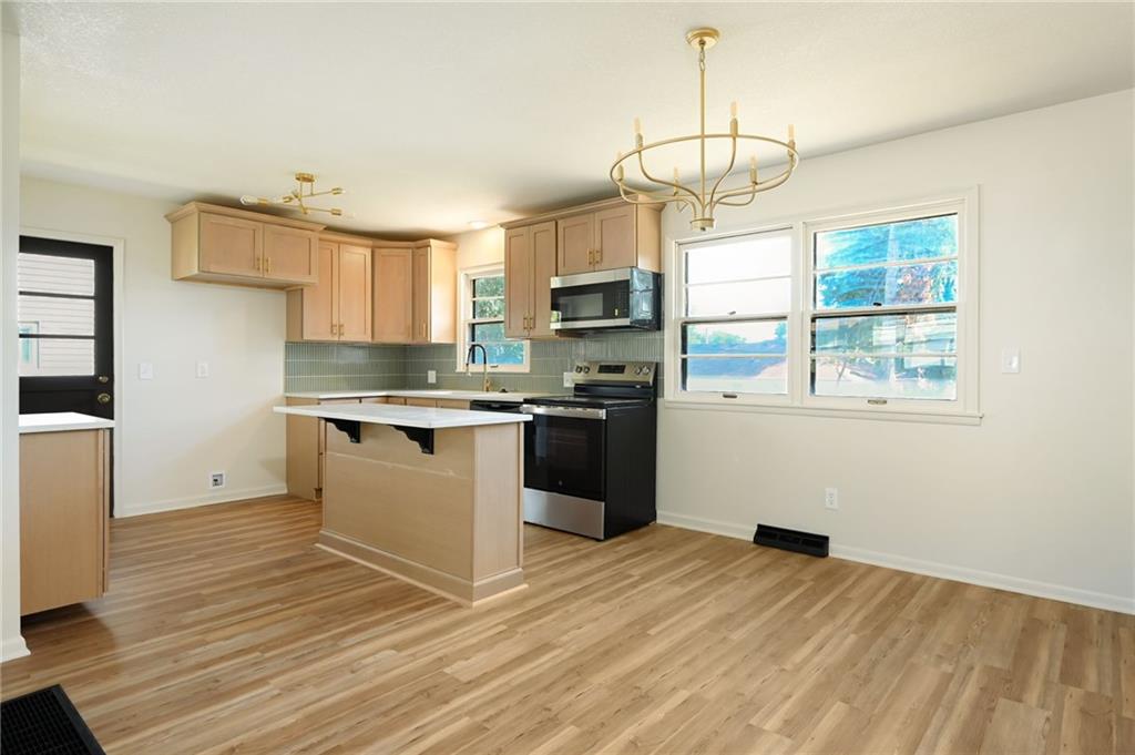 HUGE price reduction!! You don’t want to miss this beautiful raised brick ranch tucked away in a quiet, mature neighborhood just ten minutes from The Legends and all the shopping, dining, and entertainment you could want. Step inside and you’ll appreciate the open-concept design that blends the living, dining, and kitchen spaces together. The fully updated kitchen features new soft-close natural oak cabinetry, granite countertops, a beautifully tiled backsplash, and brand-new stainless steel appliances. An oversized island adds bar-top seating and extra prep space while allowing you to stay connected with the living room. The formal dining area provides a more traditional option for meals and gatherings. The living room is warm and inviting, highlighted by a gorgeous brick fireplace that serves as a perfect focal point. The main level continues with all-new LVP flooring, fresh interior paint, new hardware, and updated light fixtures throughout. The hallway bath has been beautifully renovated with a new tub, tiled shower, vanity, shelving, and modern finishes. Bedrooms are nicely sized, and the primary suite stands out with a fully updated bathroom offering a tiled shower, tub, new vanity, and thoughtful storage. Downstairs, the lower level provides a spacious family room with a second fireplace and an eclectic accent wall, along with a fourth bedroom and a third full bathroom that includes a stand-alone shower and newer vanity. The oversized two-car garage gives plenty of space for parking and storage, and the well-maintained mechanicals give peace of mind. Outside, the fully fenced backyard offers privacy and plenty of space for activities or entertaining, complete with a large concrete patio. This home is clean, updated, and ready for its new owners to move right in.