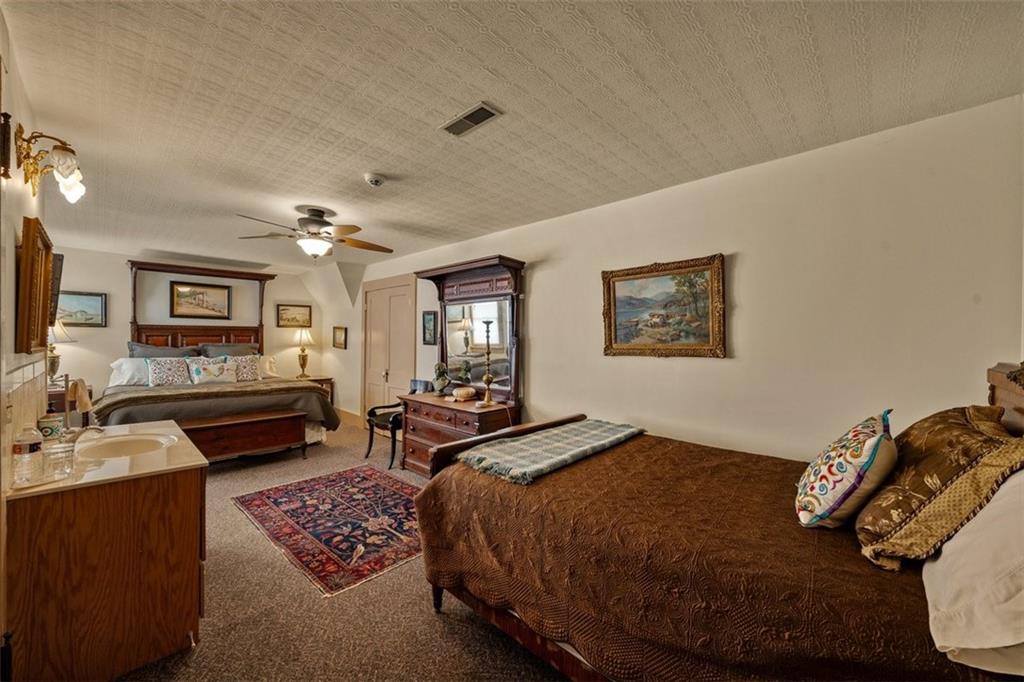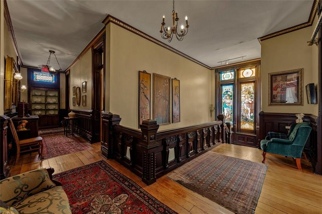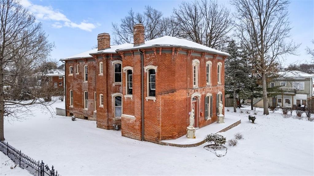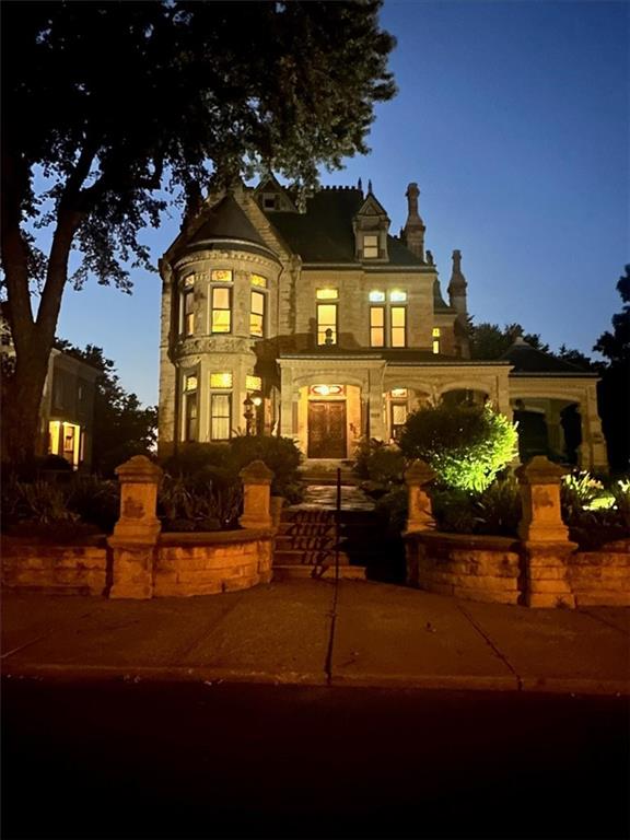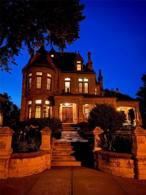 Shakespeare Chateau Inn and Gardens, located in the historic Hall Street District, is one of St. Joseph’s premier homes. A REAL BONUS IS HOW CLOSE IT IS THE KANSAS CITY INTERNATIONAL AIRPORT! Built in 1885, this Chateauesque style home was built by Nathan P. Ogden. This high-Victorian mansion is an architectural gem, showcasing 47 original stained glass windows, exquisite hand-crafted woodwork, an expansive encaustic tile foyer, ornate plaster ceilings, and many original chandeliers - just to name a few. The main house is a fully furnished turn-key bed and breakfast with six elegant suites, a spacious commercial kitchen and wine cellar perfect for small gatherings. Four guest rooms on the second level are furnished with period art and antiques each named after works of Shakespeare. Two additional suites on the third level are ideal for long term guests. The carriage house provides three apartments, perfect for longer-term rentals, adding versatility to the property. 819 Hall Street is also included. This all brick house has been refurbished on the exterior and inside is a blank canvas, stripped to the studs and ready for a transformative rehab. Whether you envision a personal residence, a thriving B&B, or an event space, the possibilities here are endless. Live your dream and make Shakespeare Chateau your next great chapter. This is a RARE OPPORTUNITY to own a piece of history. This house has changed hands only five times in 140 years and remains as magnificent as the day it was built.