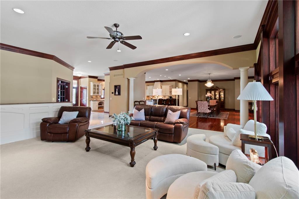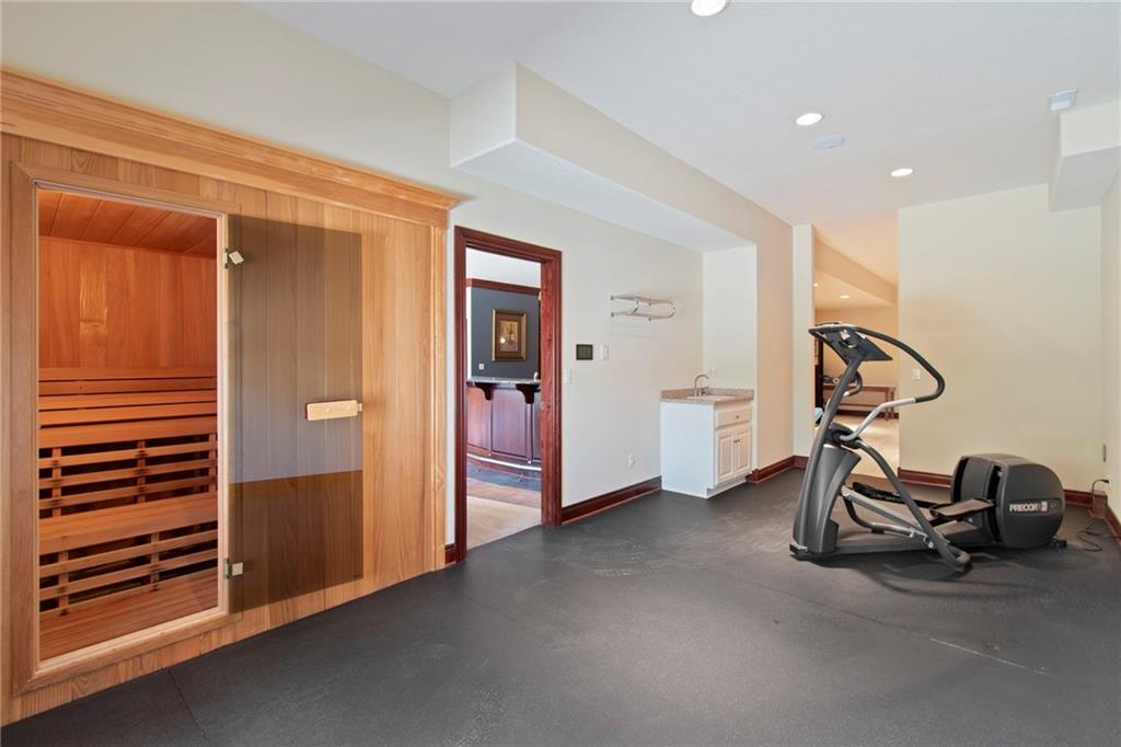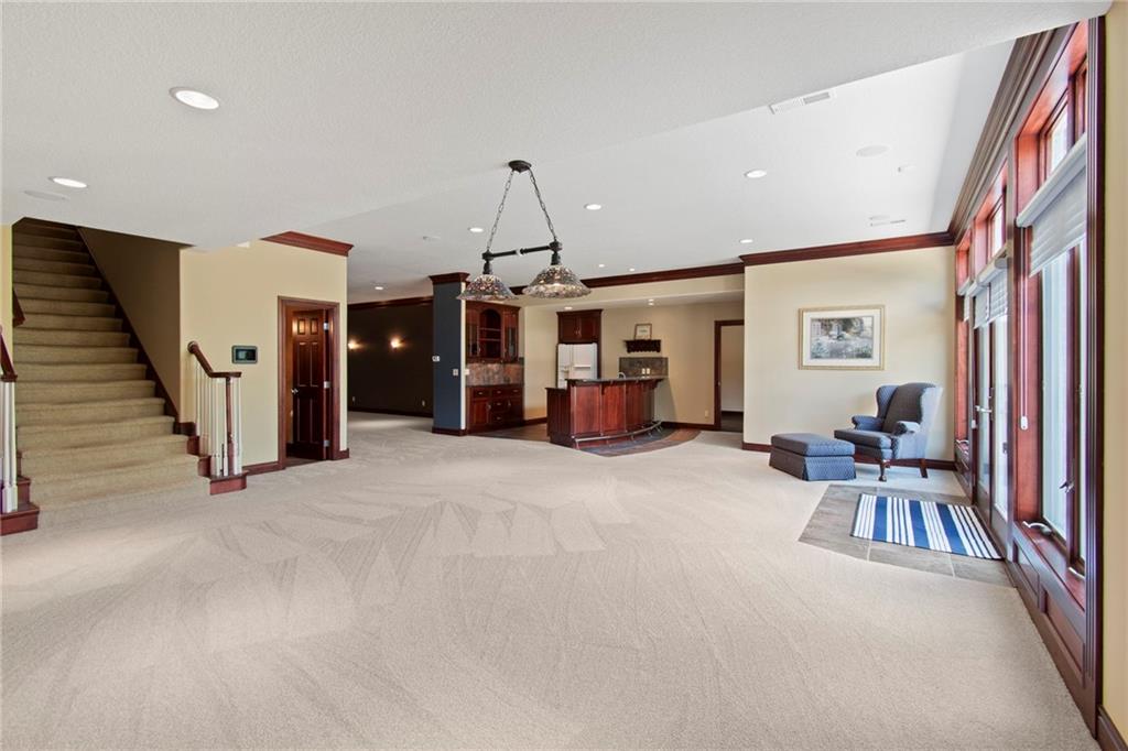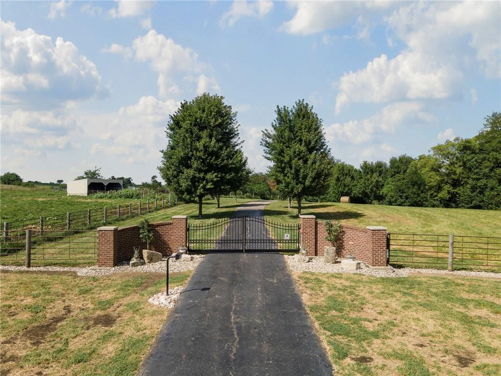 This one of a kind property is breathtaking and features a sprawling all brick ranch that is rich with features and a well thought out floor plan. It’s got it all! To start, the house is available with 40 +/- acres (being resurveyed now). Enjoy your own sanctuary with nary a neighbor, but still close to Liberty and Kearney. (Kearney Address, Liberty Schools.) Gated entrance with video comms, long paved driveway to the house and 40x60 outbuilding. Enormous Kitchen with custom cabinets and a spacious butler’s pantry. Large Dining area off of Kitchen and looks into the Living Room. 2 Bedrooms on the back of the house, each with their own full bath. The Master Suite is amazing! Including a breezeway to the in-ground and enclosed hot tub room with a fireplace. Sunroom has a half bath for pool guests and a wet bar. The pool deck is off the sunroom and on the same level as the main floor. The study is located off the entry to the home, and has a fireplace and a secret door! Both ends of the basement walkout. One end is the entrance to the massive suspended garage with 2 garage doors, (4 car garage main level!). There’s so much room down there! The other end walks out to a large patio and garden. Inside is a full bar, rec room and living room with fireplace. Basement also has two workout rooms and a sauna. It’s also home to the fourth bedroom with a full bath as well. Lots of unfinished space and storage in the basement, so there’s room to repurpose it however you’d like. This is a “see it to believe it” type of property!
