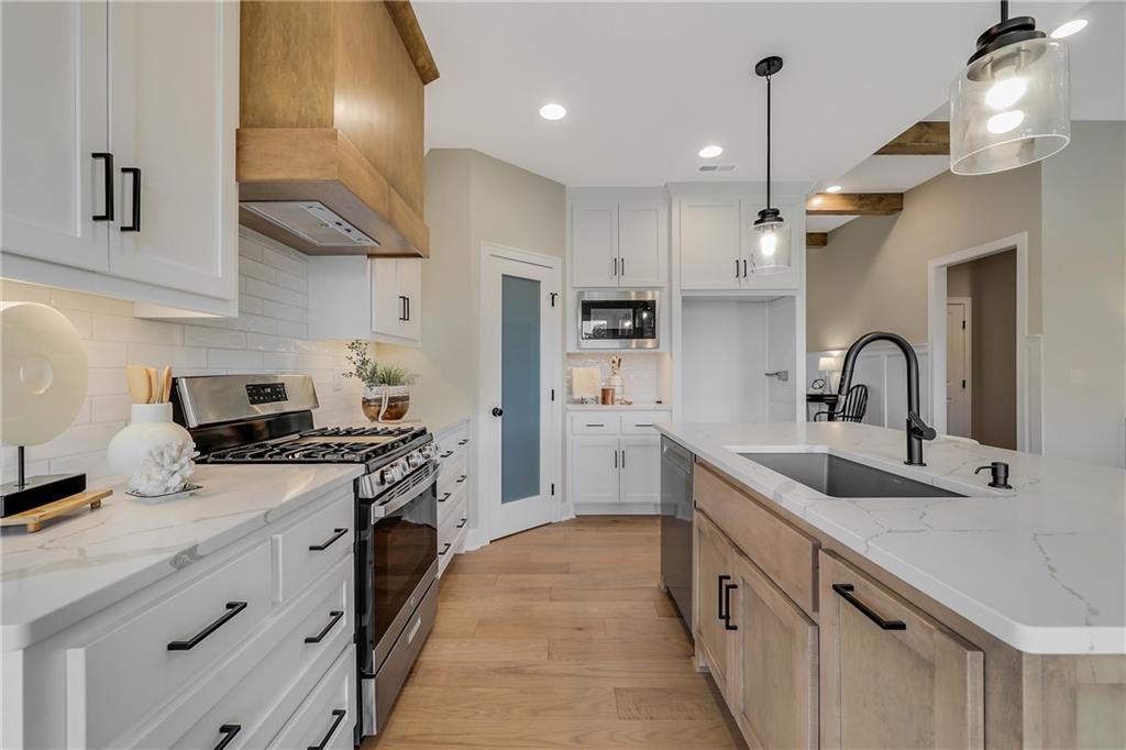 PRICE ADJUSTMENT-- WOW! How would you like turn "coming home for the holidays" into moving in to a beautiful, BRAND NEW home? Christmas is coming early to the buyer who comes forward now to cash in on the new improved price of this custom built property from A Place Called Home Construction Company! Builder has cut 10k from the asking price of this stunning & spacious reverse 1.5-story home-- now priced under $550K! You will be impressed the moment you step through the front door by all the extras and the meticulous attention to detail. Beautiful wood floors flow throughout the entryway, family room, dining area, and kitchen—creating a seamless and inviting layout perfect for entertaining. The heart of the home is the gourmet kitchen, complete with a large quartz-topped island, stainless steel appliances, a walk-in pantry, and stylish tile backsplash. The fireplace adds an impressive focal point, warmth and charm to the family room. The luxurious owner’s suite offers a peaceful retreat with an eye-catching accent wall and spa-like en suite bathroom featuring a shower, dual vanities, and a large walk-in closet. Downstairs, the finished lower level provides additional living space, ideal for a second family room, home office, gym, or guest suite—whatever suits your lifestyle. The partially covered patio allows shade for your outdoor furniture and open air for your backyard bar-b-que grill. This home is loaded with upgrades from a quality builder who just won't cut corners.. come see the difference for yourself. Act quickly to take advantage of the new, improved price on this impeccable new home.