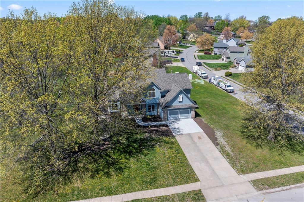 Modern two-story home located on an oversized corner lot in Grain Valley. The property includes four bedrooms, three and a half bathrooms, and a finished basement. Recent updates feature a new HVAC system, a newer roof, new appliances, freshly painted and new flooring throughout. Additional features include a vaulted ceiling, large deck and gazebo, fireplace, and a laundry room located off the kitchen.