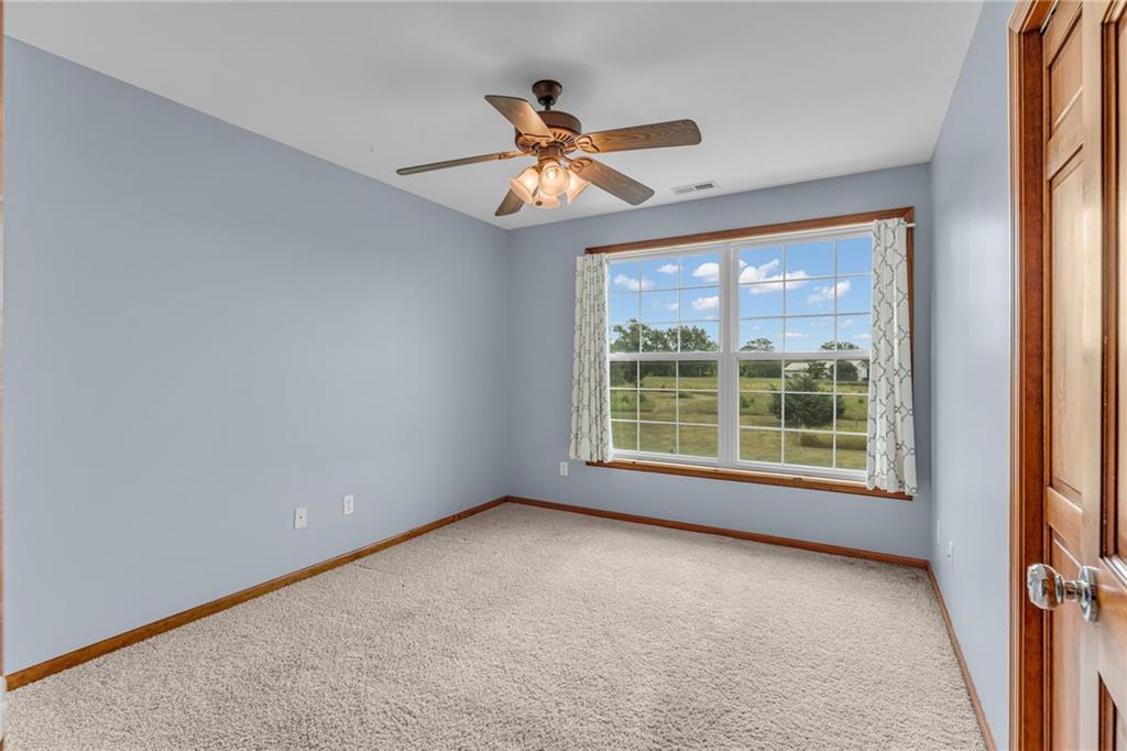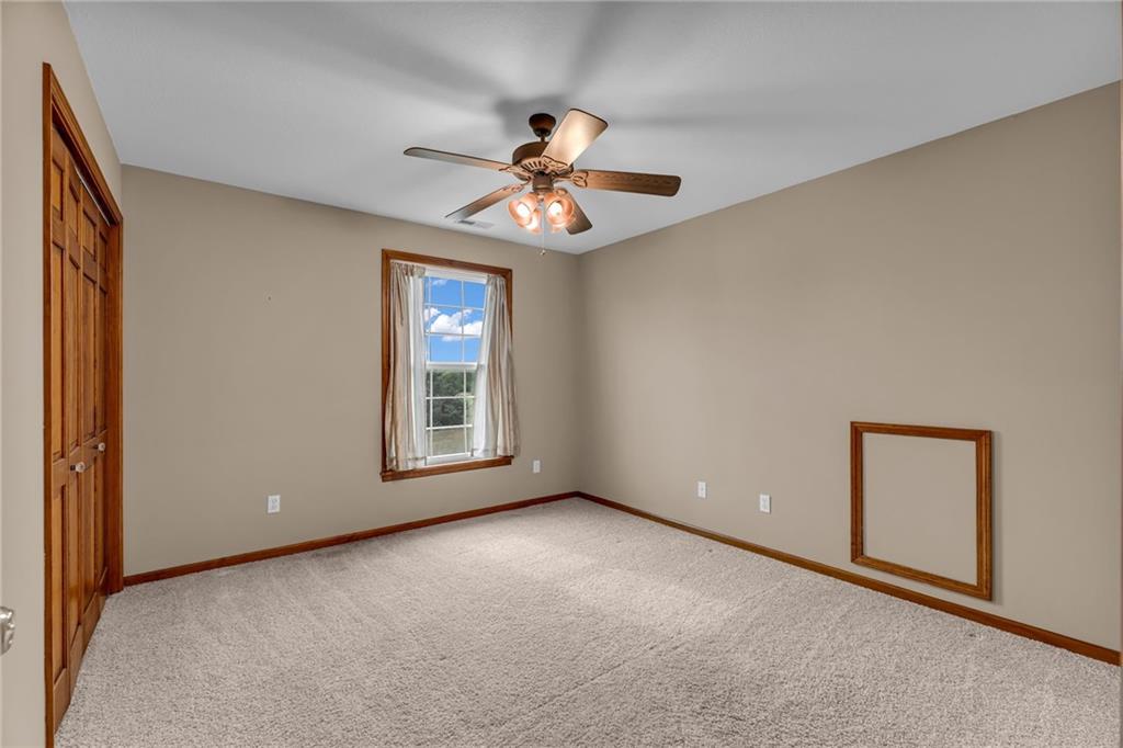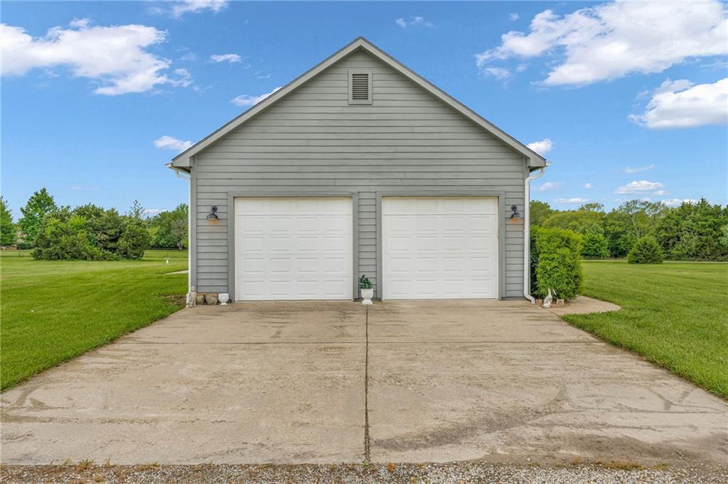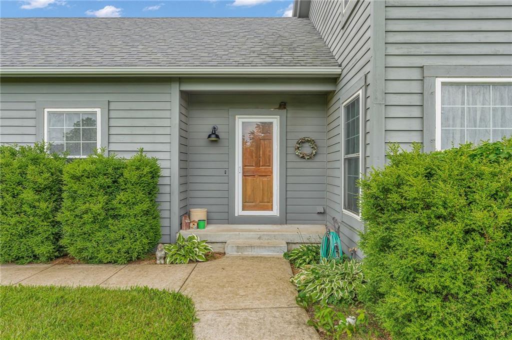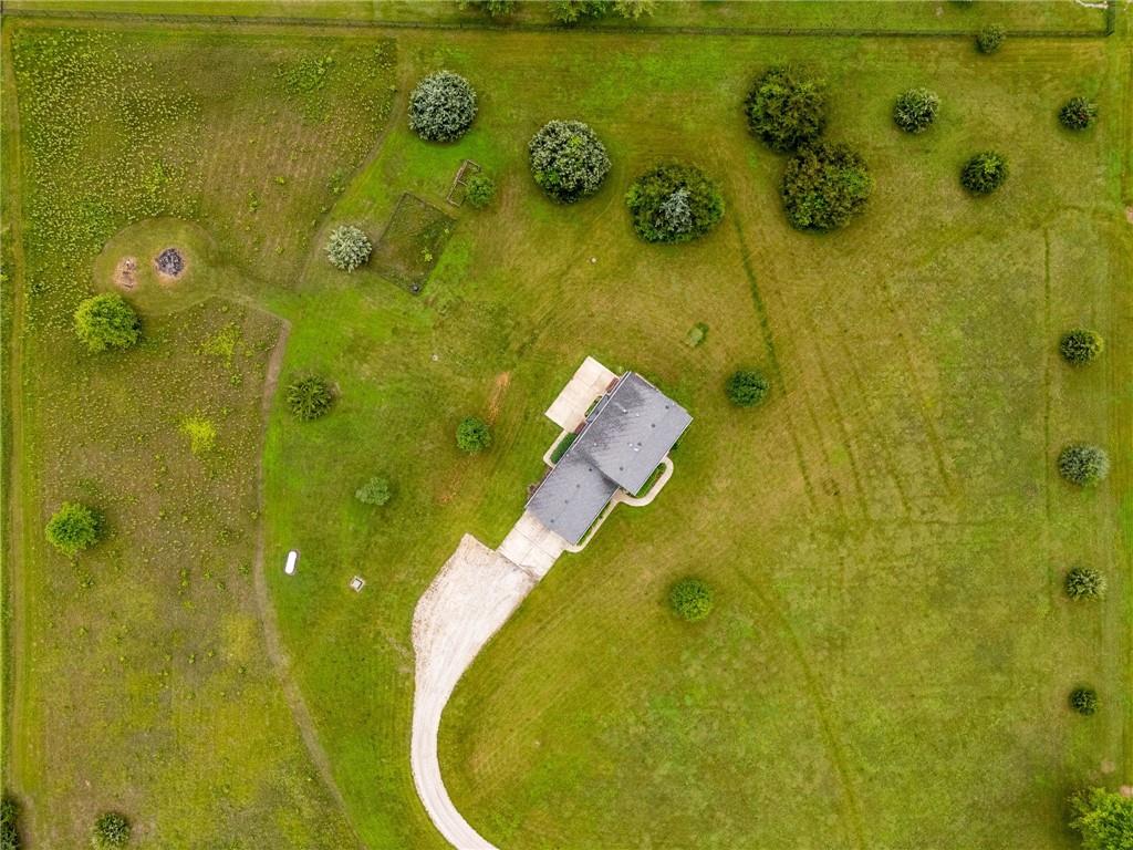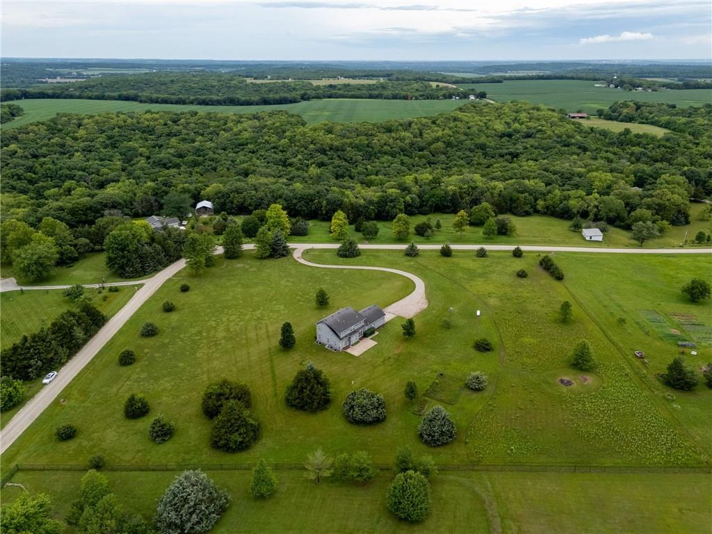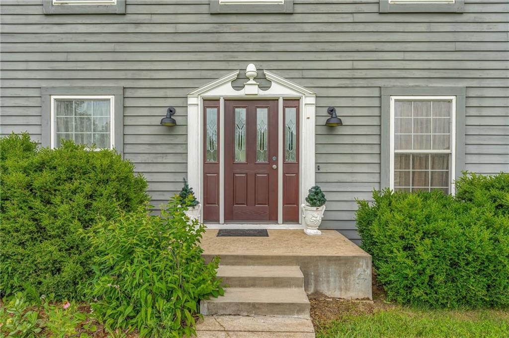 Set on five open acres just minutes from Highway 59, this two-story home offers space, flexibility, and a peaceful setting with easy access to town. Built in 2001, the home features a classic, New England inspired roofline that adds character while keeping the layout practical. A two-story entry with vaulted ceilings opens to formal living and dining areas that easily adapt to your needs. A main floor study provides a quiet space for work, reading, or hobbies. The family room centers around a stone fireplace and flows into the kitchen, which features custom wood cabinetry, an island range, pantry, breakfast area, and sliding doors to the patio. Main floor laundry is conveniently located near the garage. Upstairs, the primary suite includes an ensuite bath and walk-in closet, while three additional bedrooms share a full bath. The unfinished basement offers future potential with egress windows, plumbing for a bathroom, and a water-powered backup sump pump. Outside, the five-acre setting provides plenty of room to spread out, garden, or enjoy the outdoors. Enjoy the freedom to live your way, with space for entertaining, hobbies, and everyday life.