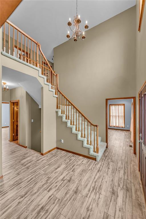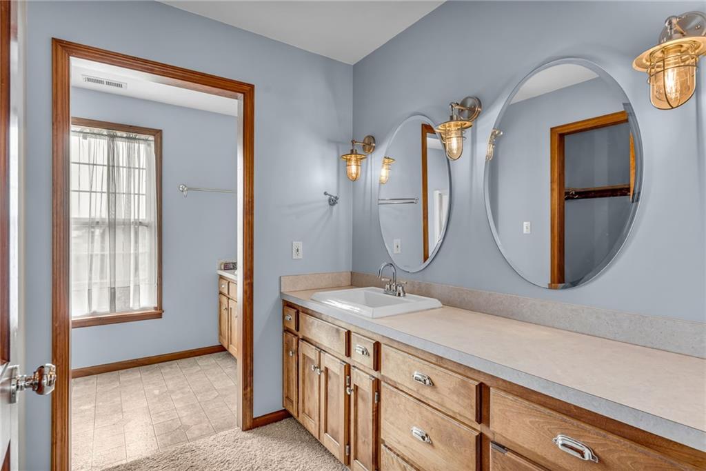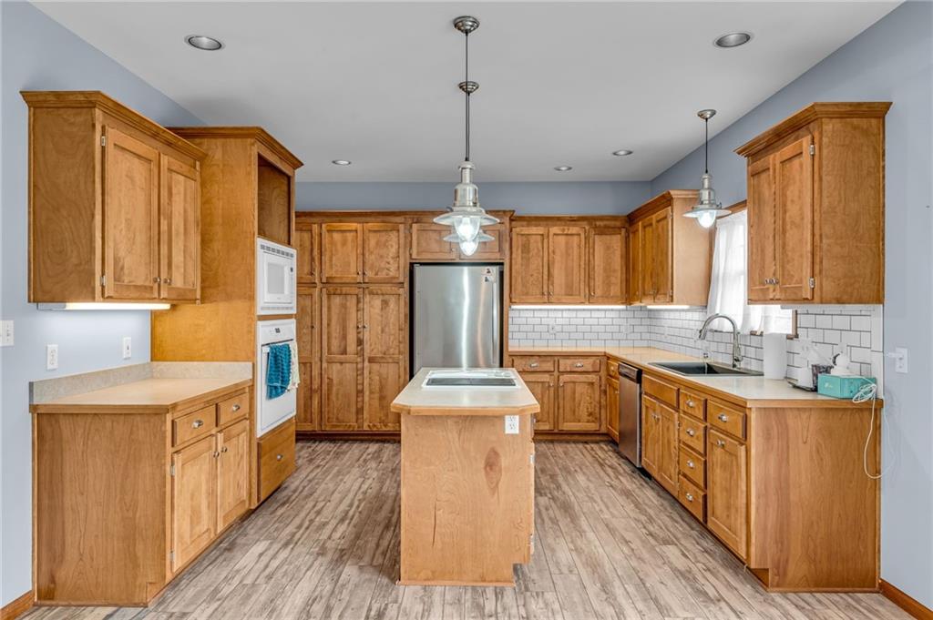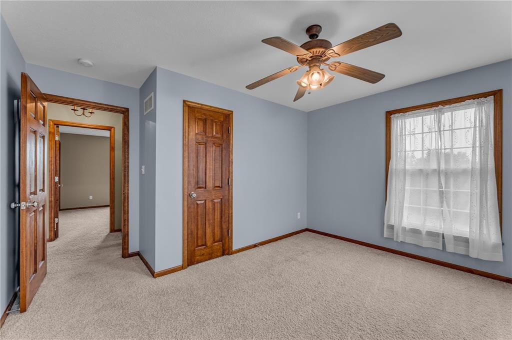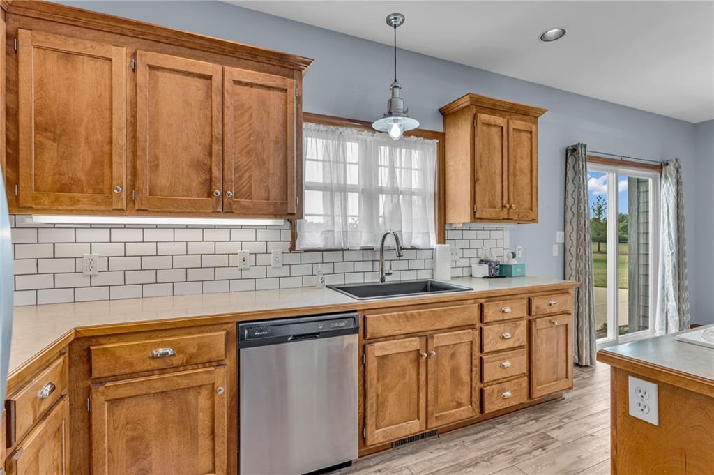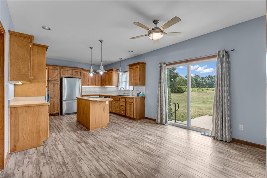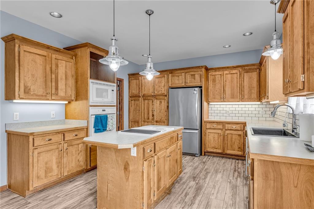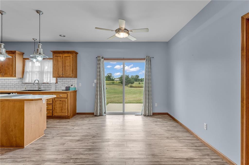 Set on five open acres just minutes from Highway 59, this two-story home offers space, flexibility, and a peaceful setting with easy access to town. Built in 2001, the home features a classic, New England inspired roofline that adds character while keeping the layout practical. A two-story entry with vaulted ceilings opens to formal living and dining areas that easily adapt to your needs. A main floor study provides a quiet space for work, reading, or hobbies. The family room centers around a stone fireplace and flows into the kitchen, which features custom wood cabinetry, an island range, pantry, breakfast area, and sliding doors to the patio. Main floor laundry is conveniently located near the garage. Upstairs, the primary suite includes an ensuite bath and walk-in closet, while three additional bedrooms share a full bath. The unfinished basement offers future potential with egress windows, plumbing for a bathroom, and a water-powered backup sump pump. Outside, the five-acre setting provides plenty of room to spread out, garden, or enjoy the outdoors. Enjoy the freedom to live your way, with space for entertaining, hobbies, and everyday life.