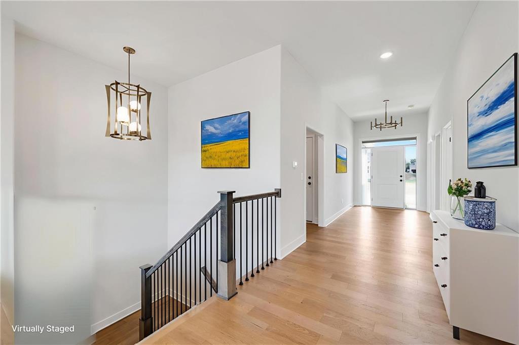 Now Under Construction – The Carlson Reverse by DRHI! Step into this beautifully designed home featuring an open-concept floor plan filled with natural light. The inviting Great Room boasts a gas fireplace with a stylish tile surround, while the kitchen impresses with gorgeous stained cabinetry, solid-surface countertops, and an electric cooktop. Hardwood floors flow seamlessly through the kitchen, dining area, Great Room, mudroom, and pantry, adding warmth and elegance. The luxurious primary suite offers a private bath with a tiled shower, while additional bathrooms and the laundry room are finished with gleaming tile for a polished look. Enjoy even more space with a finished daylight basement, perfect for entertaining or relaxing, plus a 12x10 deck for outdoor living. Located in the highly sought-after Foxberry Estates, residents enjoy resort-style amenities including a pool, clubhouse, scenic trails, and playgrounds. Home is under construction and final pricing is subject to change.