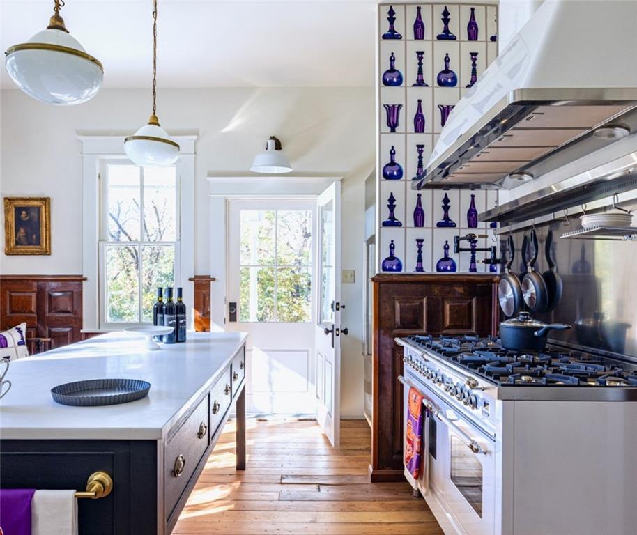 The Aderton House, built in 1845, remains one of the crown jewels of Arrow Rock Missouri. Perfectly located on Main Street, the Aderton House is adjacent to the business district and within walking distance to the Lyceum Theater. Completely renovated inside and out in strict accordance with the National Park Service Historic Preservation Standards ad Guidelines, this 3000 square feet home offers three large living spaces, a chef's kitchen and huge dining room on the main floor. It features three ensuite bedrooms, one on the main floor and two generous ensuite bedrooms on the second floor. Gorgeous details are found throughout, including a 12-panel Zuber mural titled "Views of North America," intricate moldings, luxury bathrooms, tufted wall panels, elegant window coverings, and three restored fireplaces. This magnificent home sits on 2 lots and is move-in ready ~ don't miss your opportunity to own a piece of history! And if not your primary residence, a perfect short term rental, possbile restaurant or retail space