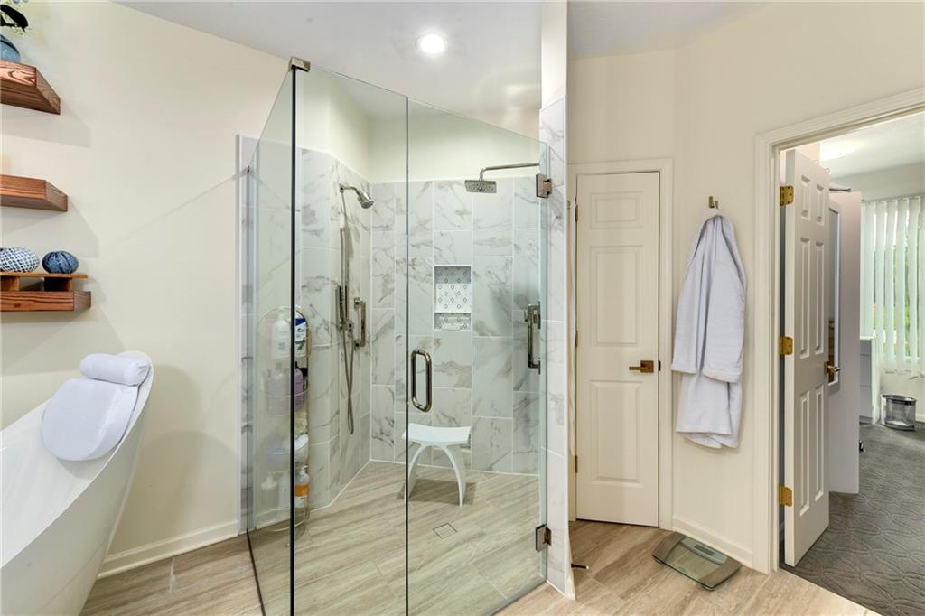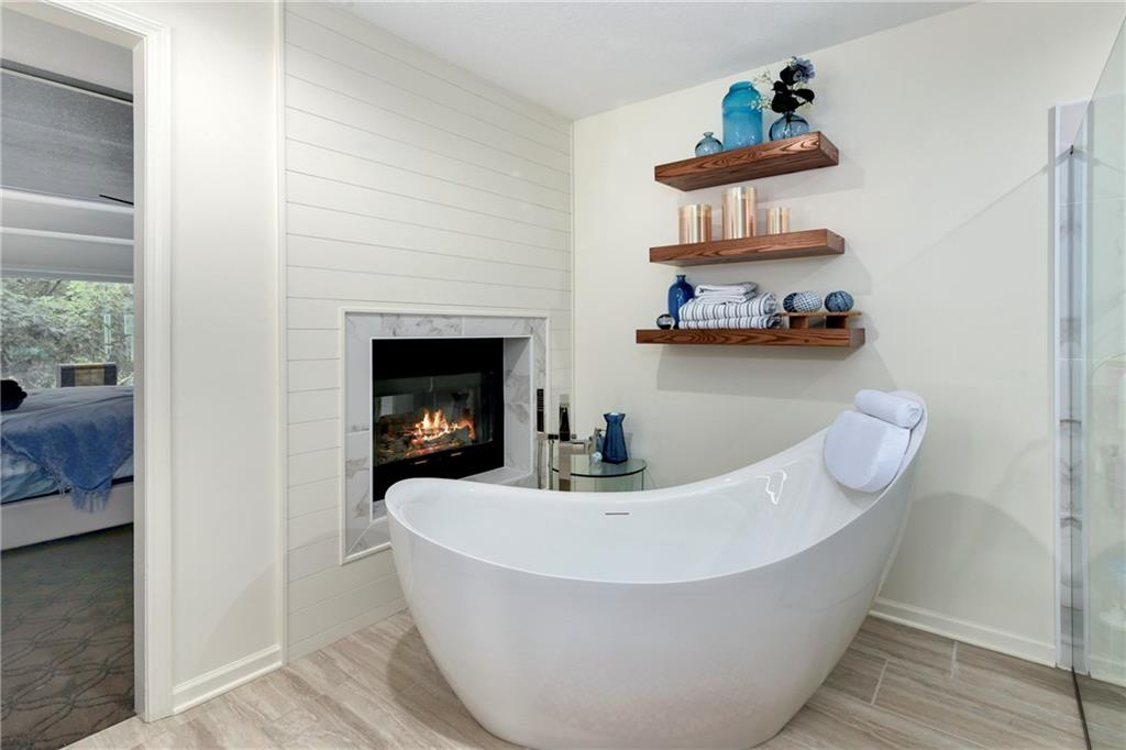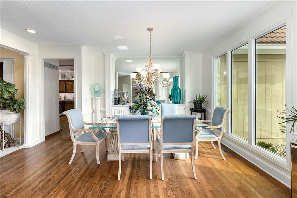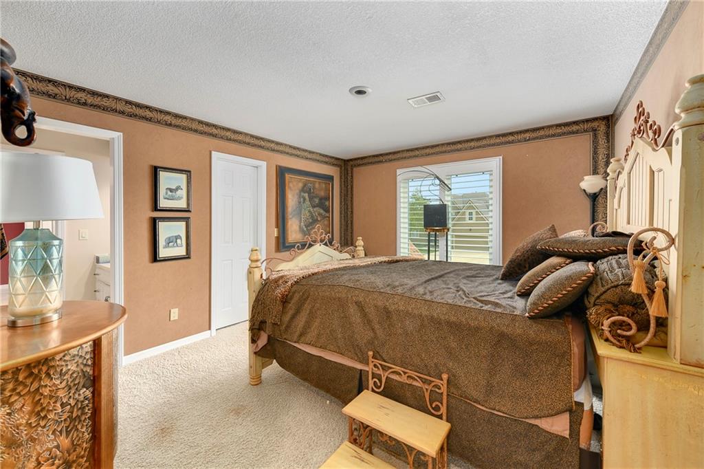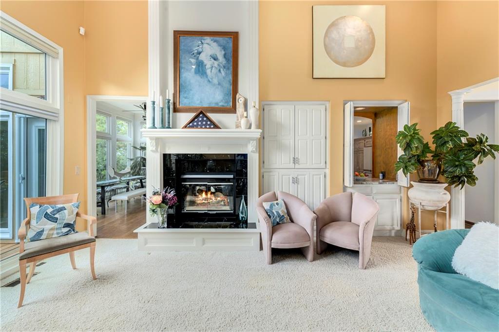 House has been freshly painted throughout. Highly desirable Arbores neighborhood in the Blue Springs school district. Neighborhood includes two lakes (with fishing), and beautiful streets for strolling. Yard professionally landscaped within the last year. Main level includes a two story foyer, Great Room, formal dining, large eat in kitchen with hearth room, laundry, powder room, access to upper deck and primary suite. Formal dining room and Great Room are open plan with partial opening to kitchen. Hearth room, included within kitchen space, features a see thru fireplace to Great Room. Kitchen/Hearth room/Great room have wall to wall windows with great view of trees. Large primary bedroom has tray ceiling, wall to wall windows and recently remolded master bath with heated tile floors, custom designed dual vanity and large zero entry shower and soaker tub in front of the see thru fireplace between master bedroom and bathroom. Upstairs are 3 large bedrooms with walk in closets, one bedroom has private bath with a Jack/Jill bathroom between the other 2 bedrooms. Upstairs also includes a large cedar closet for off-season clothes storage. Upstairs has a separate HVAC system. Extra large lower level with walkout to lower deck. Lower level is open plan and includes a full bathroom, kitchenette area with sink/cooktop/refrigerator/cabinets, large gas fireplace with mounted tv and two person office area. Plenty of room for entertaining- large gatherings in front of TV, a pool/game table and dining table. Lower level also has 3 large storage closets. Unique and private backyard with decorative fencing, and ramp to lower area ideal for kids playset or gardeners paradise. Three car garage with epoxy floors, shelving and work bench.
