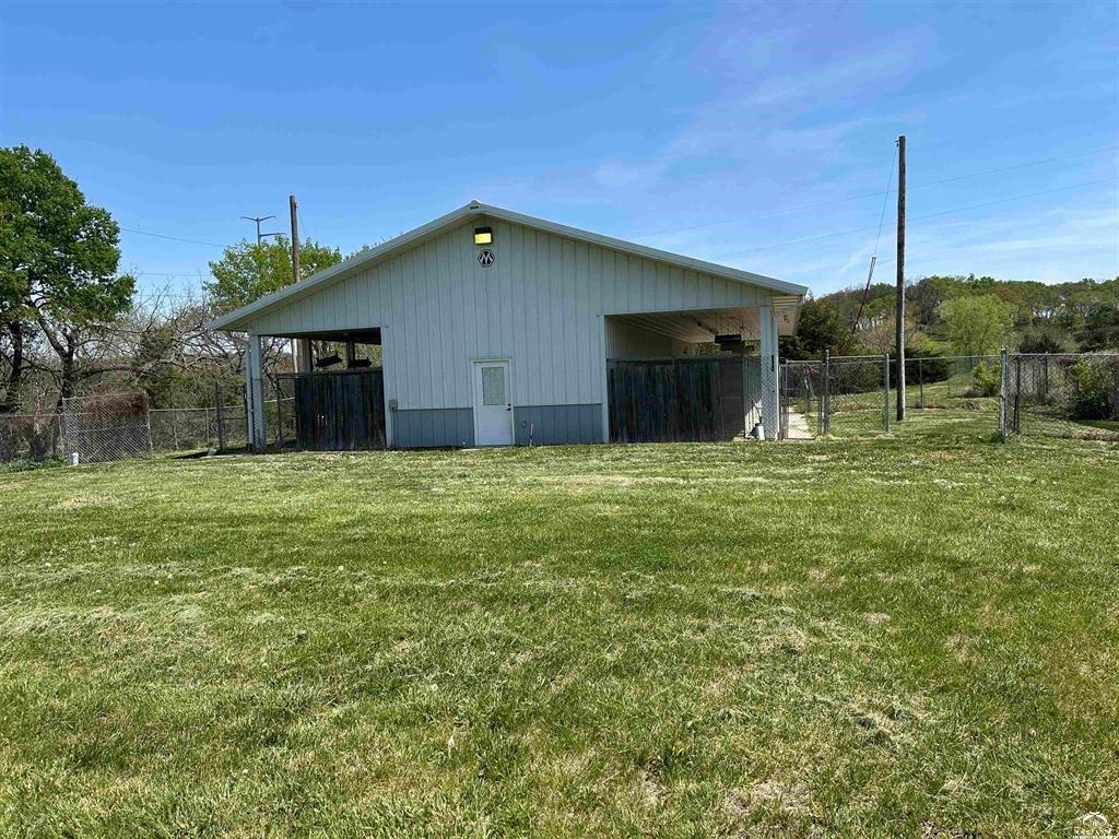 Located near Perry Lake in Ozawkie, KS, this 11.17-acre property offers a rare combination of acreage, flexibility, and location. Adjoining U.S. Army Corps of Engineers land, the property provides privacy and open views in a highly sought-after lake area. The existing 70x24 climate-controlled building is spray foam insulated and currently used as a commercial pet boarding facility. It includes indoor/outdoor kennels, concrete floors with integrated drainage, a dependable HVAC system, a bathroom, and an on-site septic system. With renovation, the existing structure offers residential conversion potential and could be adapted into a single-family home, barn dominium-style residence, guest quarters, or live/work property. The land allows room for additional outbuildings, outdoor amenities, or future expansion while maintaining usable acreage and lake-area appeal. This property may be used as a commercial site, mixed-use opportunity, residential retreat, or long-term investment. A versatile offering near Perry Lake, it presents multiple options in an established Ozawkie, Kansas location.