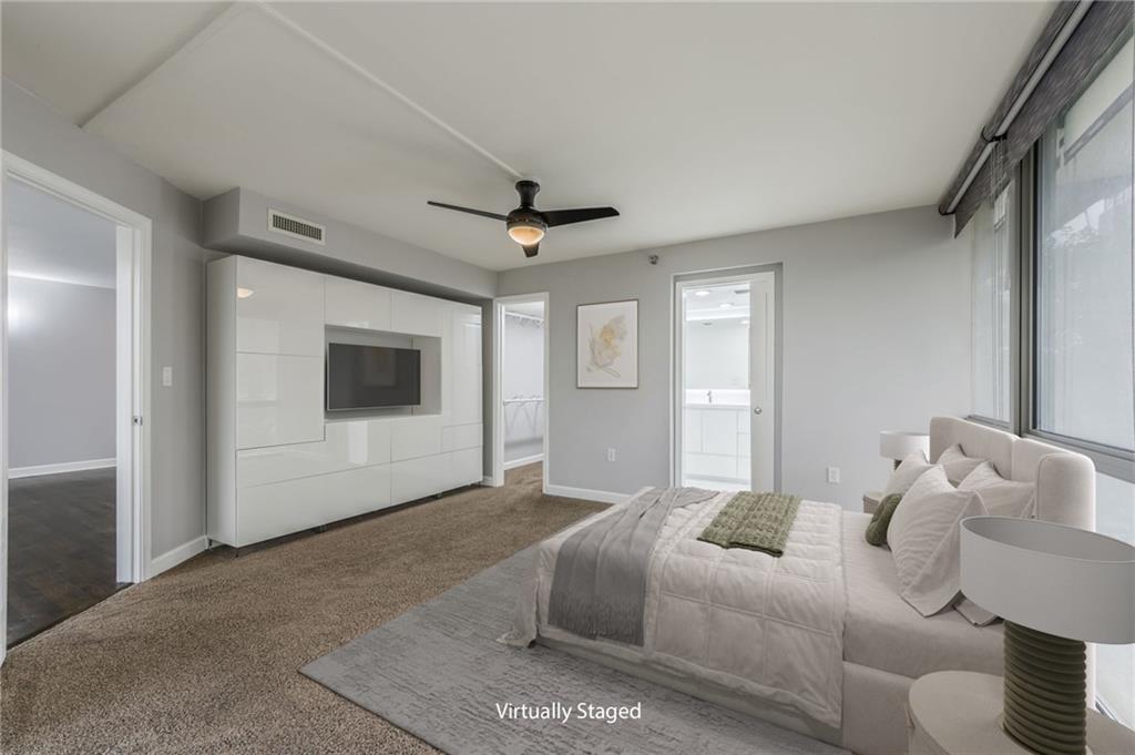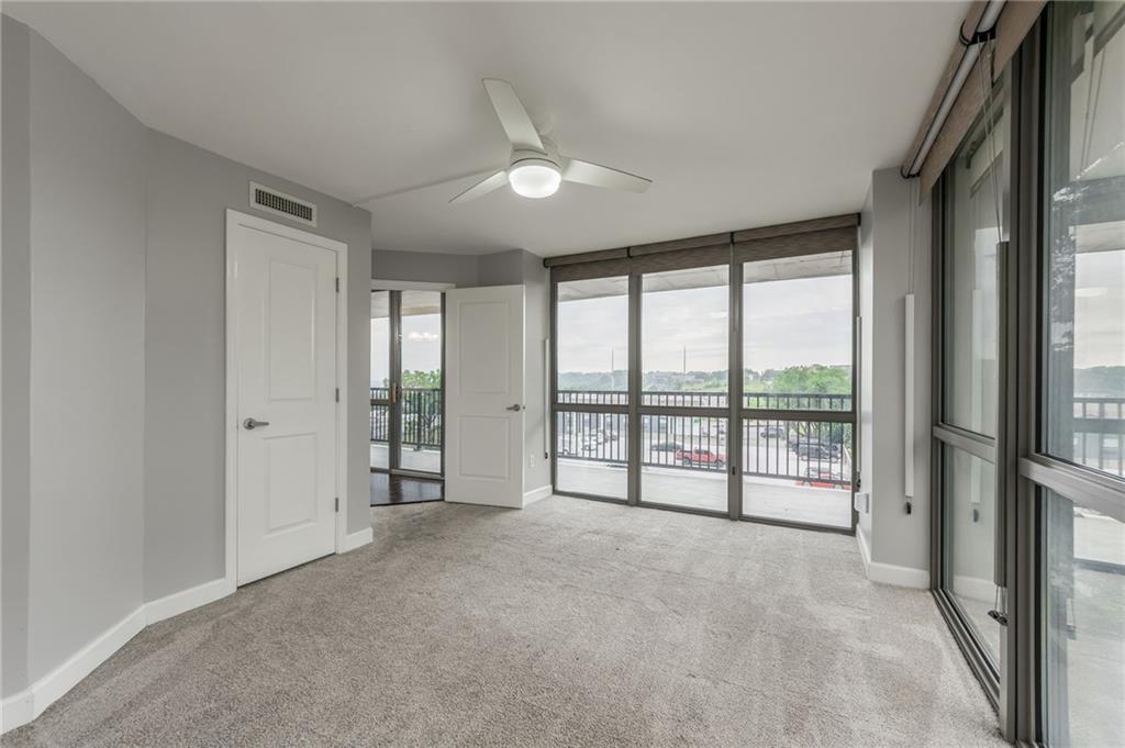 Step into luxury in downtown Kansas City! Located on the 6th floor, this incredible 2 bedroom, 2.5 bathroom end unit offers stunning views from 2 balconies, and floor to ceiling windows on 3 sides! Both balconies have been completely refinished and provide fantastic views of the city! The open concept living area includes beautifully refinished hardwood floors, and is flooded with natural light. The kitchen features granite counter tops and a large center island that is perfect for hosting family and friends. Enjoy the completely remodeled master bathroom complete with a custom built-in for additional storage. The nook just off the living room is a perfect space for a home office, sitting room, or could even be turned into a third bedroom. Additional upgrades include custom blackout curtains, and custom built in cabinets in the master bedroom and office space for more storage! This unit also includes a basement storage unit, and 2 spaces in the gated parking garage to keep your things secure and out of the weather. The amenities offered at The View are some of the best in the city! The building provides 24/7 security as well as two pools (one indoor and one outdoor), hot tub, gym, sauna, tennis courts, putting green, basketball, and bike storage. You can also enjoy the theater room and rec room that includes billiards, a full kitchen, and an outdoor patio making it the perfect place to host all of your events. Conveniently located within walking distance to the river market, and the KC Streetcar! With so much of the city at your fingertips, you won’t want to miss all that this place has to offer!