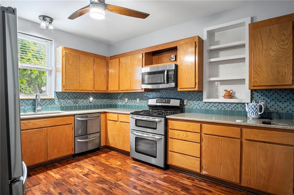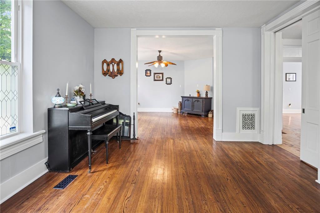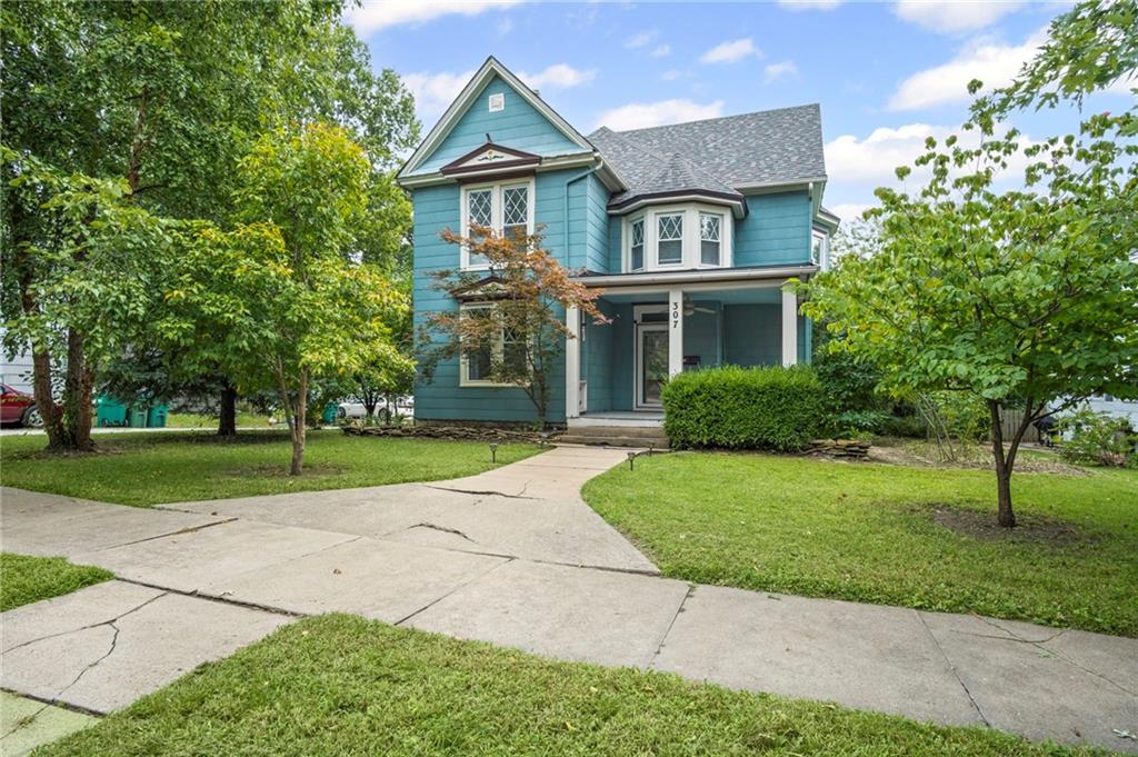 Discover an enchanting Victorian sanctuary where timeless elegance meets contemporary sophistication, nestled gracefully on a generous corner lot in the heart of Paola. This remarkable 4 bed, 2.5 bath home spans an impressive 2,548 sq ft of meticulously maintained living space, offering the perfect marriage of historical charm & modern convenience. Step through the threshold and be immediately captivated by soaring ceilings adorned with original trim and hardware that whisper tales of craftsmanship from a bygone era. Gleaming hardwood floors flow seamlessly throughout, their lustrous finish catching and reflecting abundant natural light that streams through updated windows, creating an atmosphere of warmth and welcome. The heart of this home reveals an updated kitchen featuring modern appliances, complemented by a spacious pantry & an inviting coffee bar area – perfect for those leisurely morning rituals or impromptu gatherings. An exquisite open staircase serves as both functional passage & architectural masterpiece, drawing the eye upward to the second floor w/ graceful sophistication. The true crown jewel awaits beyond the privacy-fenced backyard: a stunning inground pool surrounded by a carefully curated outdoor oasis. This private retreat transforms ordinary evenings into extraordinary experiences, whether hosting gatherings or seeking solitary beneath starlit skies. Practical luxury abounds w/ thoughtful conveniences including dual laundry hookup locations, generous attic storage space, and recent updates to essential systems. A 3 year-old roof, updated hot water heater, furnace, and air conditioning ensure peace of mind, while modern touches thoughtfully preserve the home's authentic Victorian soul.? This remarkable property represents exceptional value, priced strategically below county appraisal – a rare opportunity to acquire distinguished living in an established neighborhood. Pool has been winterized since fall of 2024 and currently has the cover on.