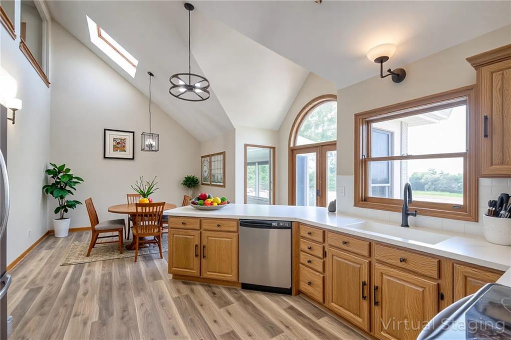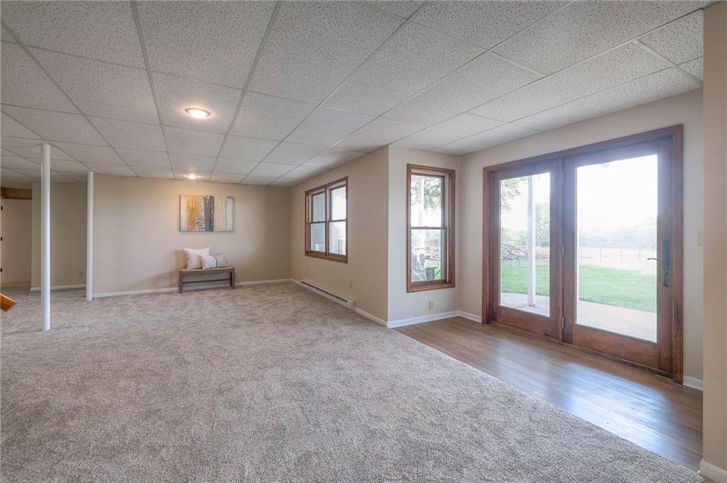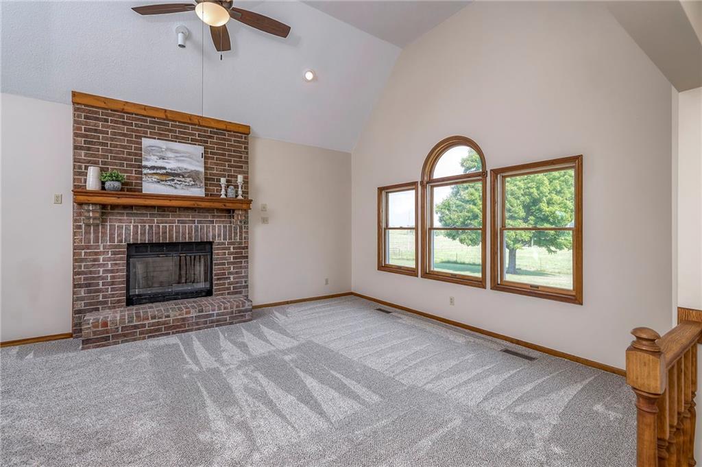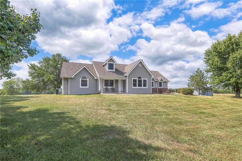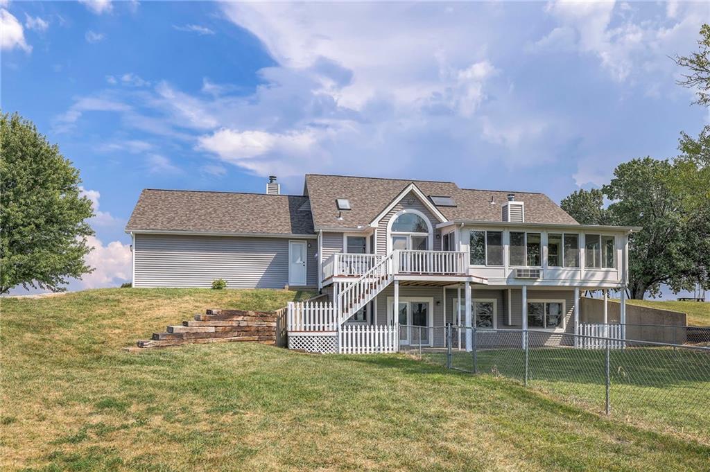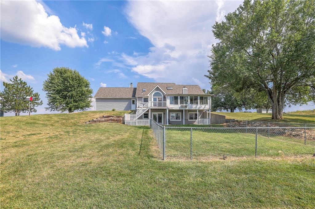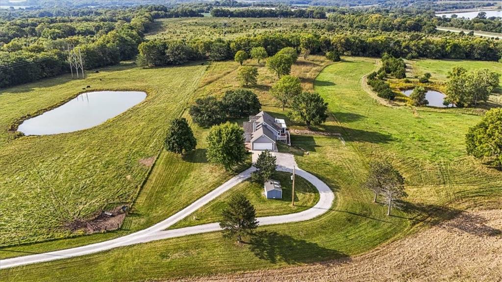 Dreamy and peaceful property situated on 57 acres, located less than 4 miles from Paola schools, shopping, and Lake Miola. A long scenic driveway leads you to this updated 1.5-story home, offering the perfect blend of comfort and country living. Inside, you’ll find a turn-key residence featuring an updated kitchen with new countertops, stainless steel range and microwave, fresh interior paint, new flooring throughout, and a brand-new roof. The spacious main-level living room boasts vaulted ceilings, a cozy fireplace, and views of the front pond, while a bonus sunroom just off the kitchen provides the ideal spot to enjoy west-facing sunsets. Step outside to the large deck conveniently located off the kitchen perfect for BBQ gatherings with friends and family. The main level also includes a secondary bedroom and the primary suite, complete with an updated en-suite bathroom featuring a large shower and double vanity. The finished walk-out lower level offers additional living space with a bedroom, full bathroom, and large family room that opens to a patio and fenced yard perfect for kids and pets. Outdoor living shines with wide open spaces, a patio, and a sunporch designed to capture year-round sunset views. Come enjoy the views and bring an offer, seller is motivated. For those with horses or cattle, the land offers two picturesque ponds, one nestled in a fully fenced, 20-acre pasture. Outdoorsmen will appreciate the hunting opportunities across the 57 acres, while families will love the peace and privacy. It’s a property that blends country living with endless possibilities. Not into farm animals? You can lease out the pasture to another local farmer and still be able to enjoy your peaceful property and those amazing sunset views!
