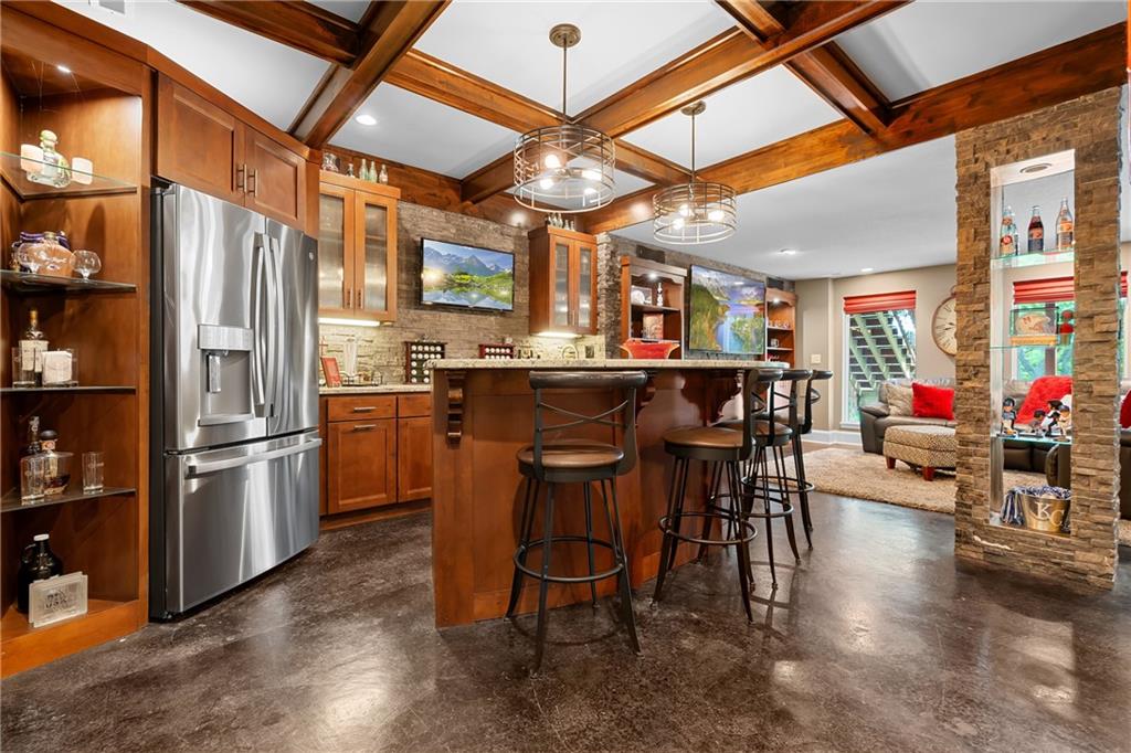 Welcome home to this stunning 5-bedroom, 4.5-bath residence offering 3,748 sq ft of beautifully finished living space in the sought-after Liberty School District. Ideally located just steps from Shoal Creek Elementary, this home features an open-concept floor plan perfect for both everyday living and entertaining. Highlights include an extended driveway, a spacious 3-car garage with 240V EV outlet, and a luxurious primary suite featuring an extra-large walk-in closet and spa-like en suite bathroom with heated tile floors—a perfect touch of comfort and luxury. Brand-new windows installed this year fill the home with natural light, while the fully fenced backyard provides both privacy and peace of mind. Step outside to the expansive 553 sq ft covered composition deck, beautifully crafted for long-lasting durability and minimal maintenance. With a ceiling fan and ample space for outdoor dining or lounging, this deck is ideal for year-round enjoyment. The finished basement offers a stylish bar area, creating the perfect space for hosting game nights or casual get-togethers. Neighborhood amenities include a community pool, tennis courts, walking trails, and beautifully maintained green spaces. Don’t miss this rare opportunity to own a move-in-ready home with modern upgrades, exceptional space, and access to top-tier schools. Schedule your showing today!